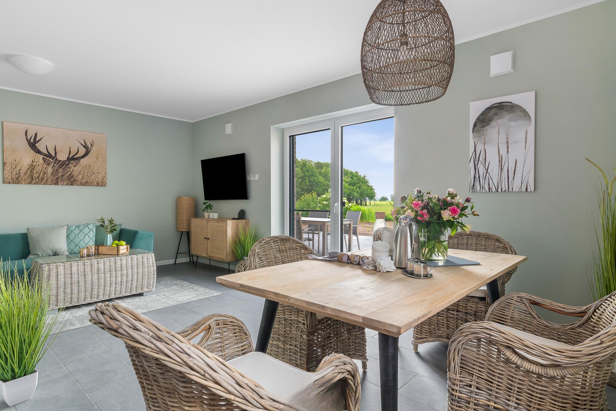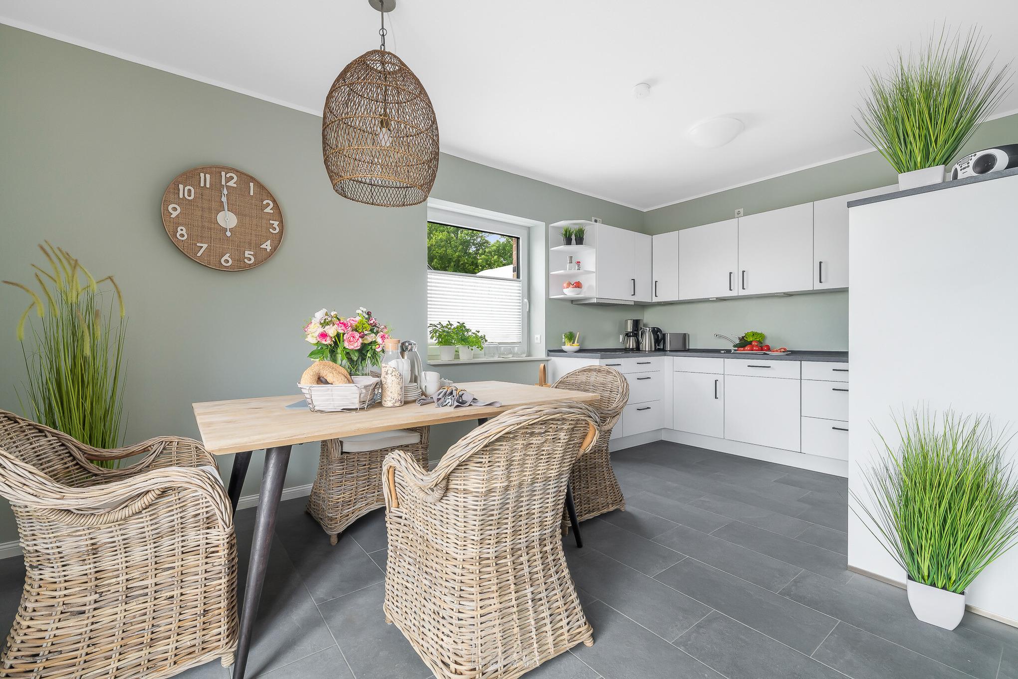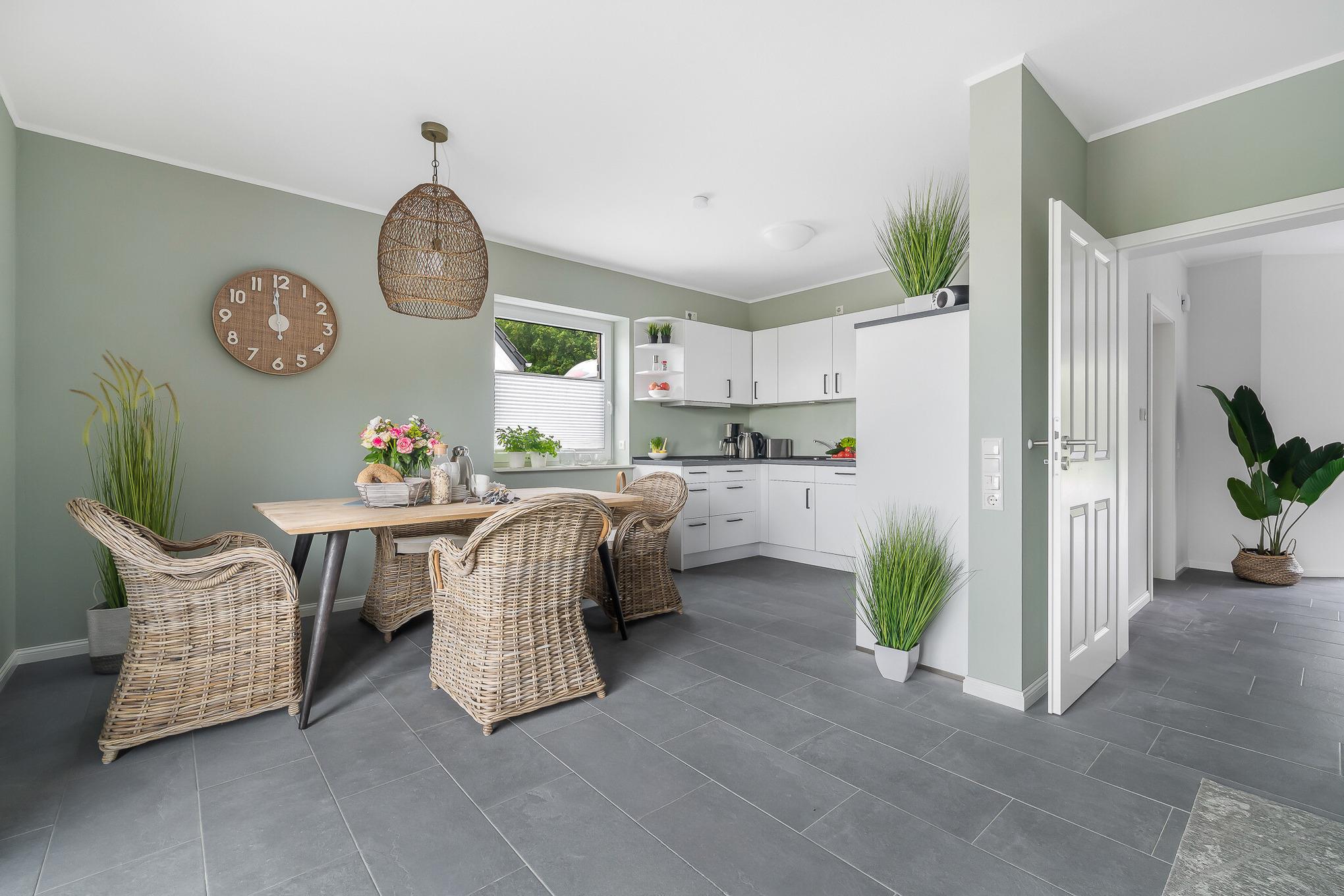 Die elegante Doppelhaushälfte "Wattenkieker" bietet ein hochwertiges und modernes Ambiente, das Ihren Aufenthalt an der Nordsee zu einem unvergesslichen Erlebnis machen wird! Besonders hervorzuheben ist die nachhaltige Bauweise des Hauses. Es entspricht nicht nur dem Standard von KfW 40 plus, sondern bezieht seinen Strom vollständig aus erneuerbaren Energiequellen. Zusätzlich wurde eine Erdwärmepumpe installiert. Der großzügige Wohnbereich ist stilvoll eingerichtet und mit einem Flatscreen-TV ausgestattet. Die separate, moderne Küche bietet alles, was Sie für einen gelungenen Kochabend benötigen. In den beiden Schlafzimmern befinden sich jeweils ein großes Doppelbett sowie ein Flatscreen-TV. Die beiden modernen Bäder verfügen jeweils über eine ebenerdige Dusche. Alle Fenster verfügen über elektrische Aussenrollläden. Zum Haus gehören zudem eine Terrasse, ein großer, komplett eingezäunter Garten und ein Gemeinschaftsgeräteschuppen. Vor dem Haus steht Ihnen ein großzügiger Parkplatz zur Verfügung. Es gibt zusätzlich einen Carport.