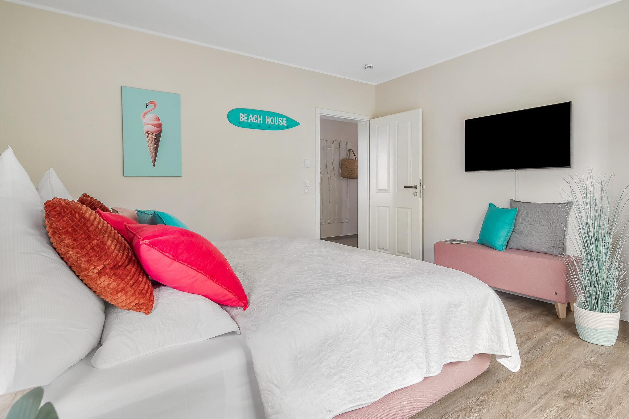 Entdecken Sie diese Luxusferienwohnung "Flamingo Bay" in Osterhever an der Nordsee, die Platz für bis zu 4 Personen bietet. Diese elegante Unterkunft vereint modernen Komfort mit stilvollem Design und ist der ideale Rückzugsort. Hunde sind bei uns herzlich Willkommen.