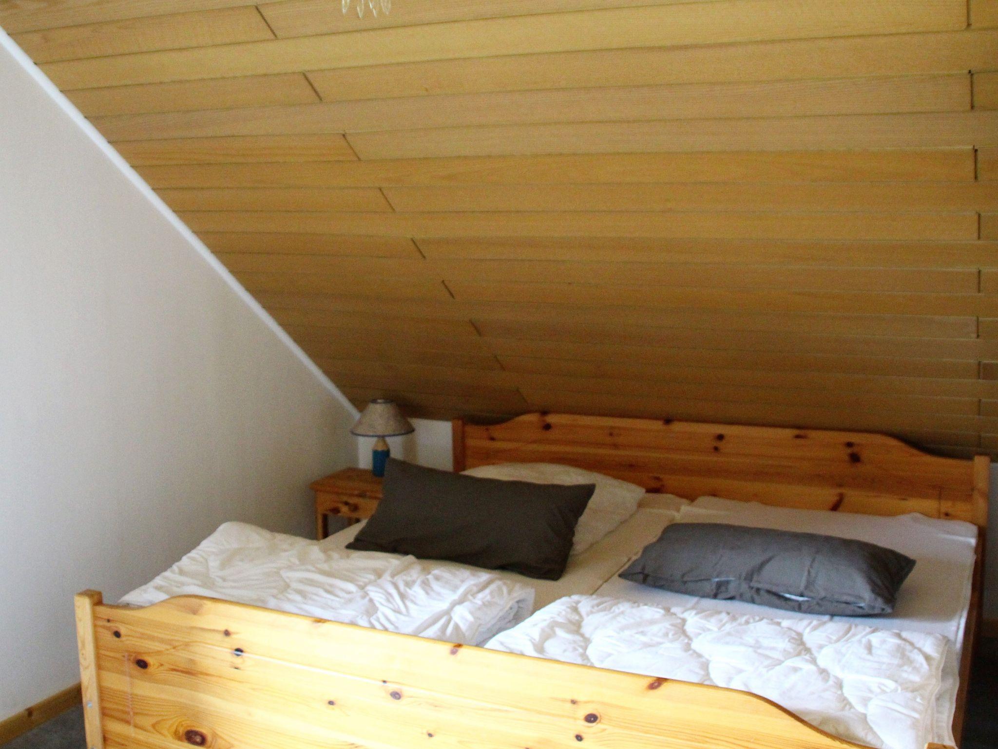 Die Ferienwohnung befindet sich im Obergeschoss mit seperaten Eingang und möblierten Garten. Die Wohnung besteht aus einem großzügigen Wohnraum mit zus.Schlafcaouch, anliegender Küche und Essbereich. Ein Doppelzimmer und ein Einzelzimmer. Es besteht die Möglichkeit ein Zustellbett /Kinderbett zusätzlich zu stellen.