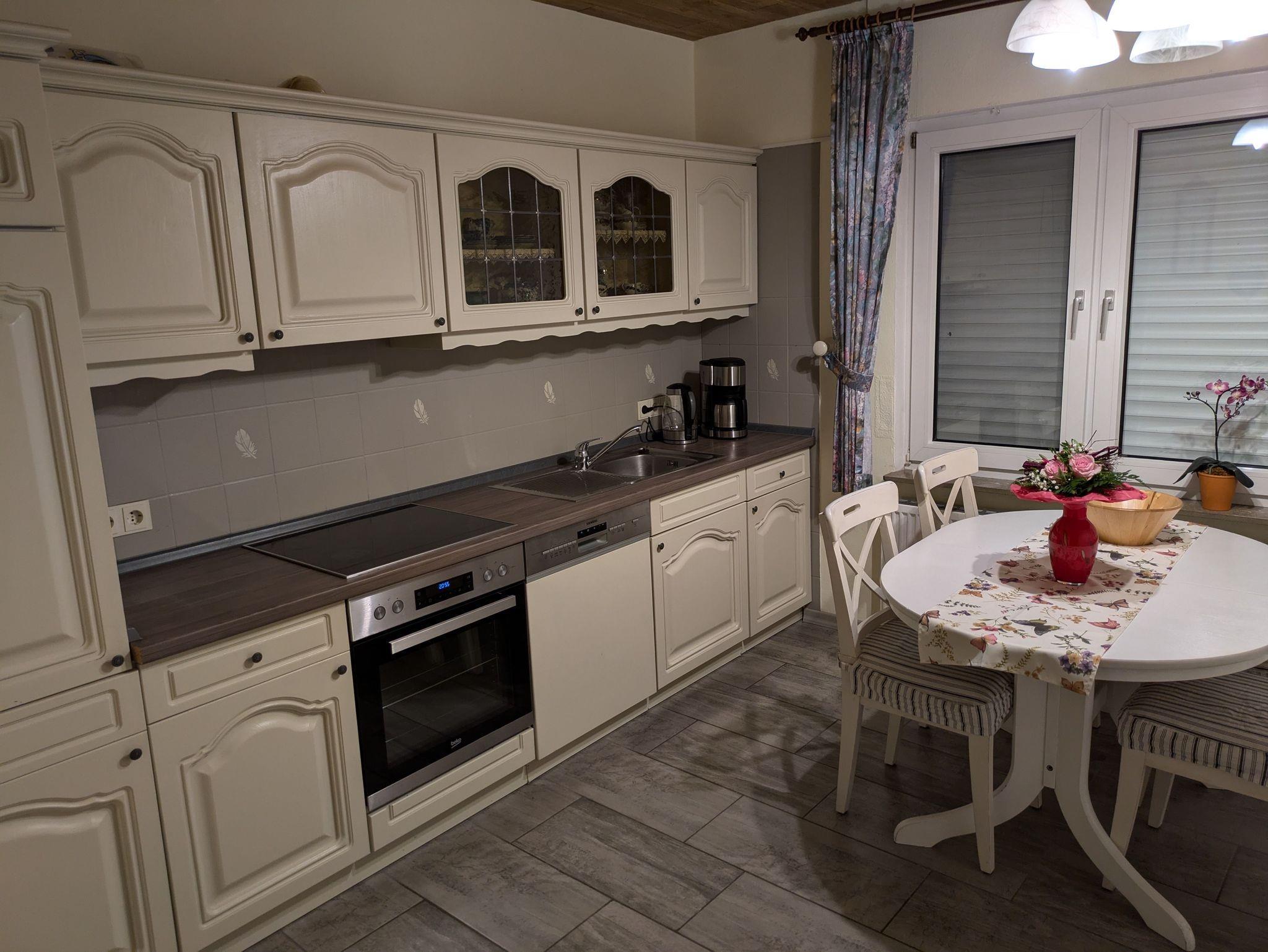 Die Ferienwohnung im EG verfügt auf 70 qm über eine vollausgestatte Küche mit Spülmaschine und Mikrowelle, einem Schlafzimmer mit Boxspringbett und ggf. Kinderbett (kann gestellt werden). In allen Räumen sind ausreichend Schränke und Ablageflächen vorhanden. Alle Fenster sind mit Fliegengitter versehen. Das Wohnzimmer ist mit einem Schlafsofa (1,75 m breit x 2,00 m lang) ausgestattet, Radio und TV. Das Bad verfügt über eine begehbare Dusche/ WC. Über die überdachte Terrasse mit Gartenmöbel und Grillmöglichkeit gelangt man direkt in die Wohnung. Kostenloses WLAN und ein PKW-Stellplatz am Haus.
