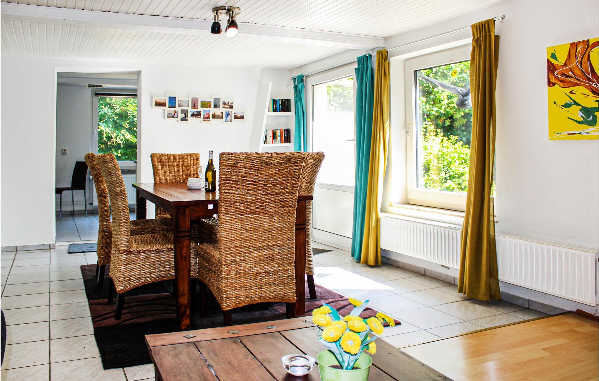 Die Ferienwohnung hat eine gute Lage, da Sie von der Wohnung aus jederzeit auf den Deich gehen und aufs Wasser schauen können. Im Inneren der Wohnung erwarten Sie zwei Schlafzimmer, eine Küche, ein Wohnraum und ein Badezimmer mit Dusche. Die Einrichtung ist modern und ansprechend.