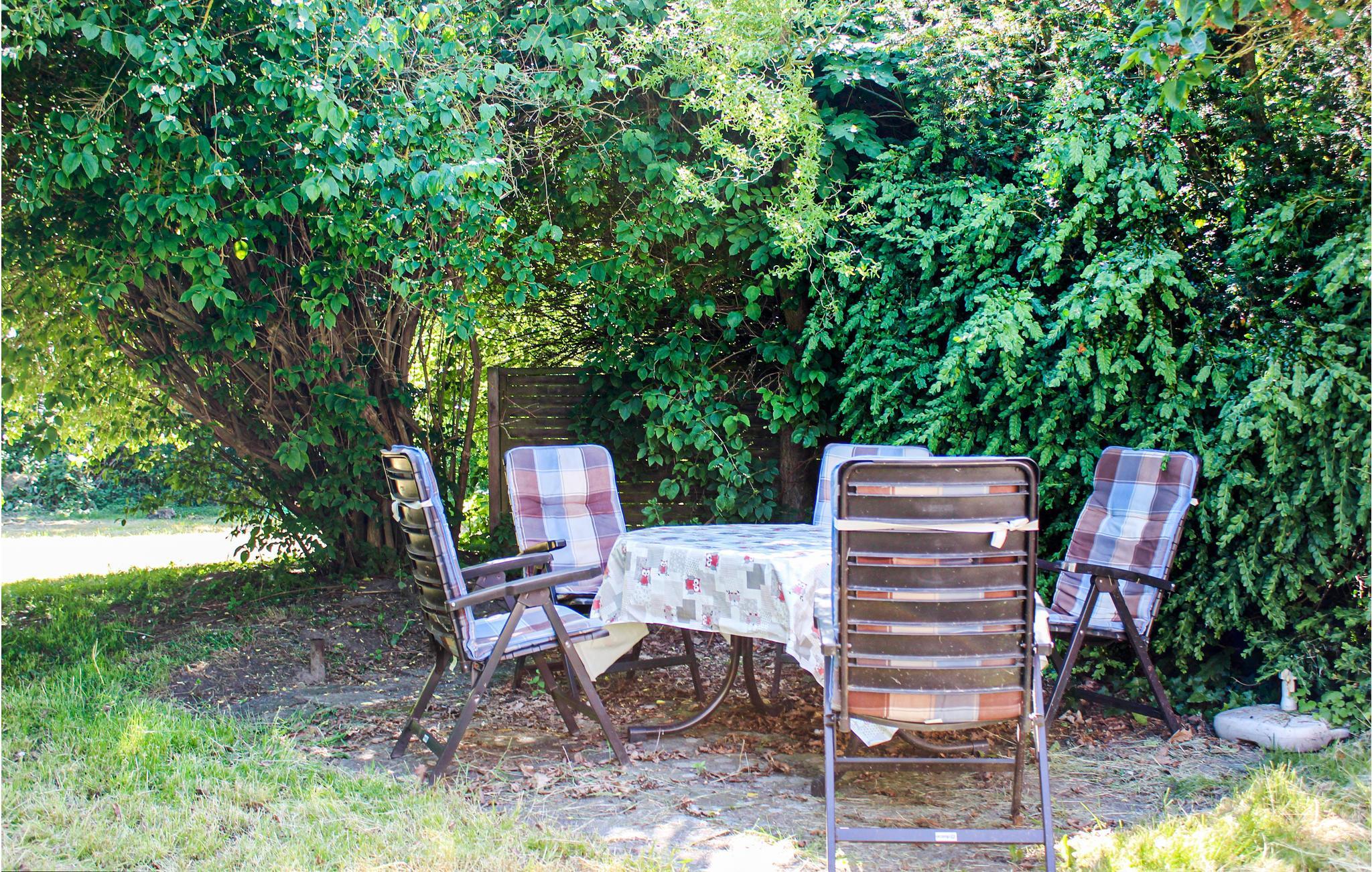 Verbringen Sie den Urlaub bei schönem Wetter unbedingt an der frischen Luft und genießen Sie die Sonne auf der offenen Terrasse der Ferienwohnung. Der große Garten kann auch von Gästen der Unterkunft DNS216 genutzt werden