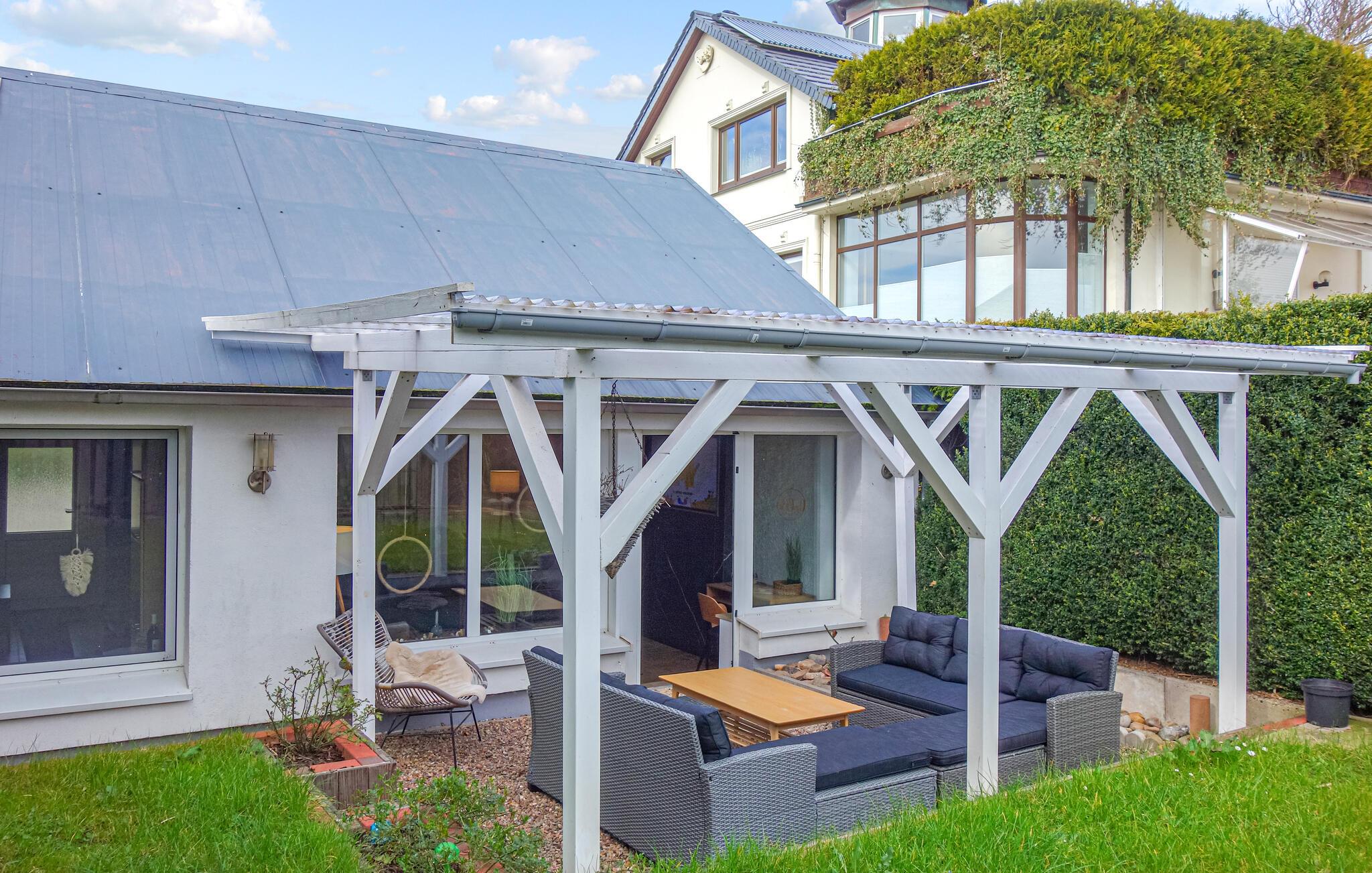 Nicht nur das Haus hat seine Vorzüge, sondern auch die überdachte Terrasse sowie der Garten. Verbringen Sie hier gesellige Stunden und quatschen bis in die späten Abendstunden.