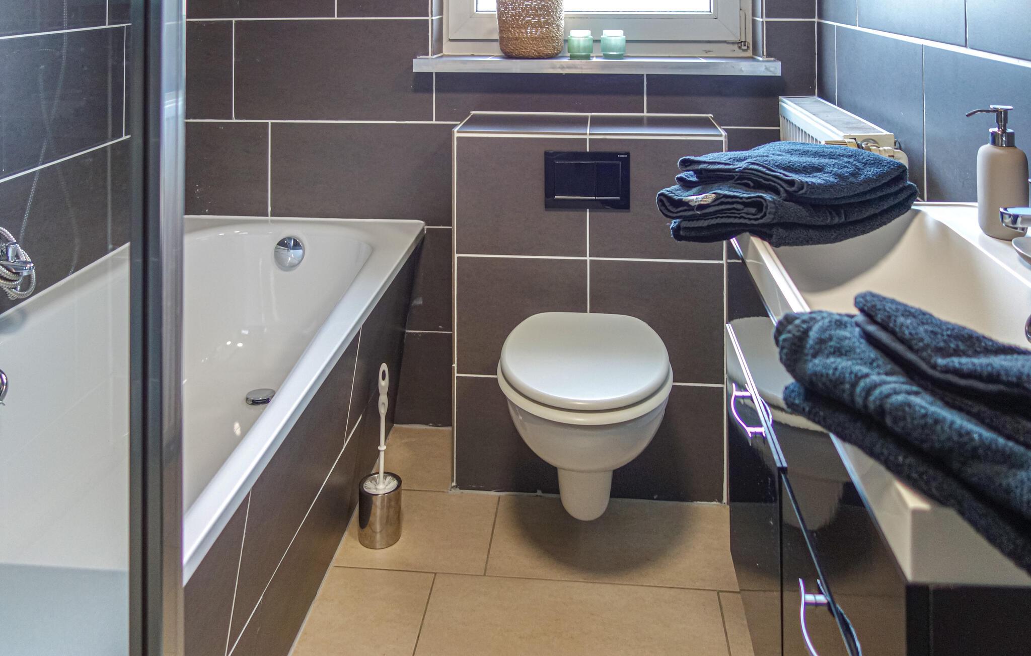 Entspannen Sie sich in diesem familienfreundlichen Ferienhaus mit schöner Terrasse.
