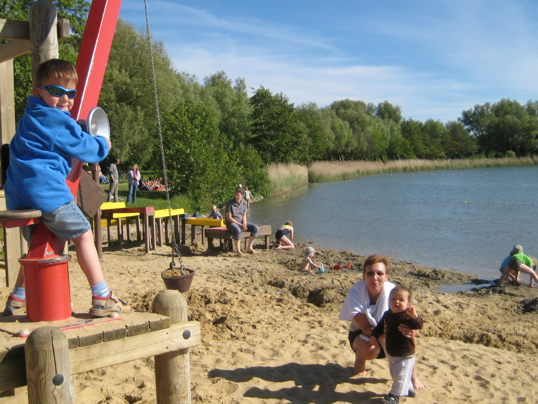 Draußen auf dem Grundstück steht Ihnen eine große sonnige, teils überdachte Terrasse mit sehr schönem Blick auf den See zur Verfügung. Oder lehnen Sie sich zurück auf der neben der Terrasse befindlichen Holz-Hollywoodschaukel und genießen Sie die Aussicht und die gesunde Luft. Sandkasten nebst Spielzeug befindet sich ebenso hier. Ein Kanu inkl. zwei Schwimmwesten steht direkt am Haus zu Ihrer freien Verfügung, Benutzung jedoch auf eigene Verantwortung. Die angelegten Seen im Wasser- und Landschaftspark eignen sich gut zum Baden und Boot fahren.