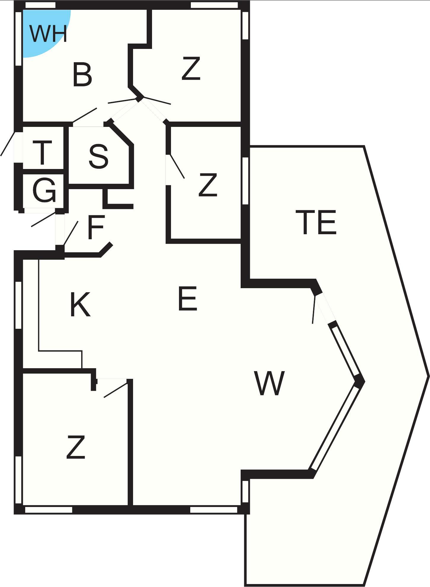Off. Küche: E-Herd, Kühlschr. m. Gefrierfach, Mikrow., Abzugsh., Kaffeem., Spülm., Waschm, Trockner