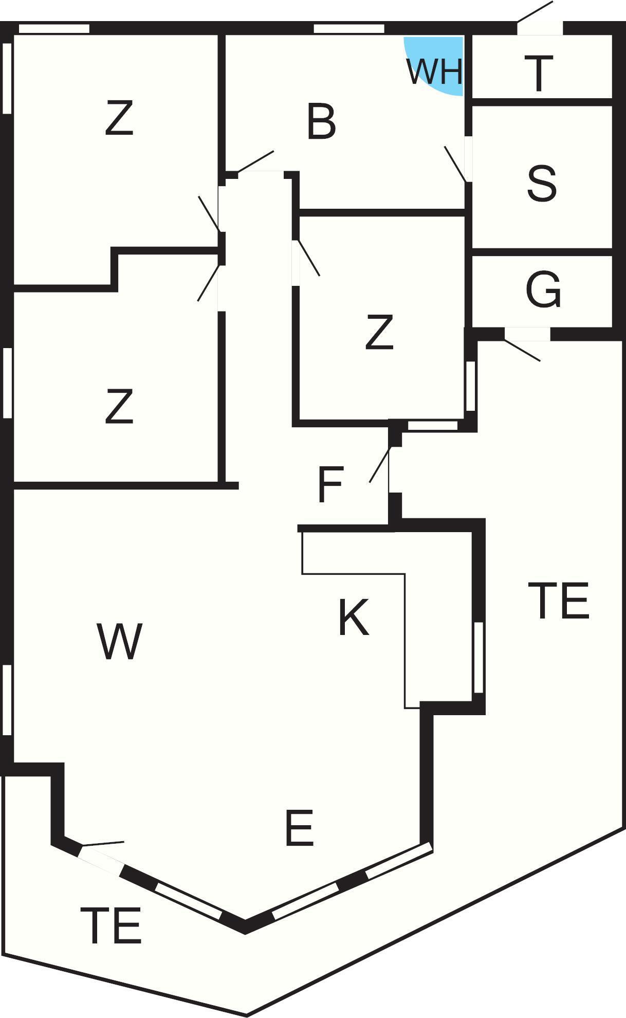 Bad: WC, Waschb., Dusche, Fußbodenheiz.