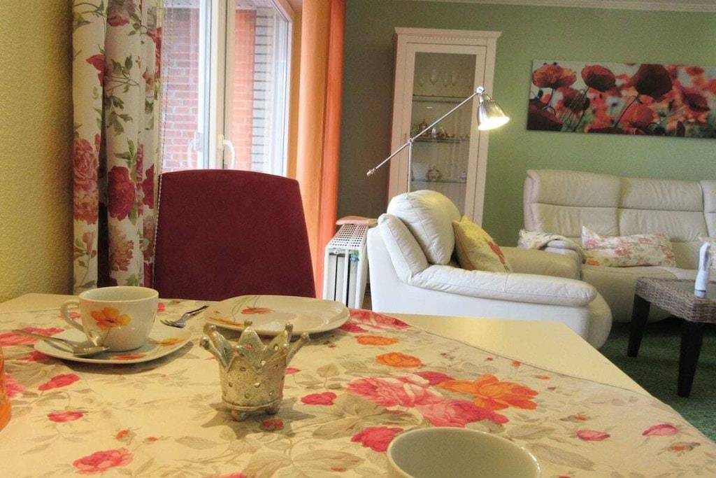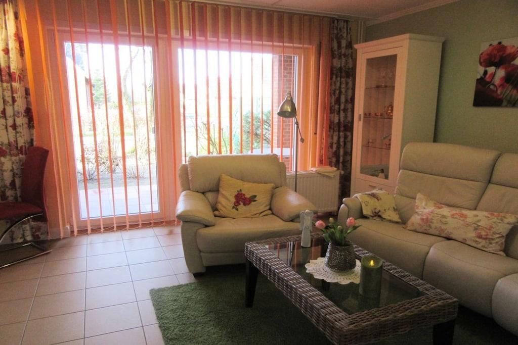 Moderne Ferienwohnung Marielund in ruhiger Lage von Otterndorf, nahe Strand und Stadtmitte, mit 2 Terrassen und kompletter Ausstattung.