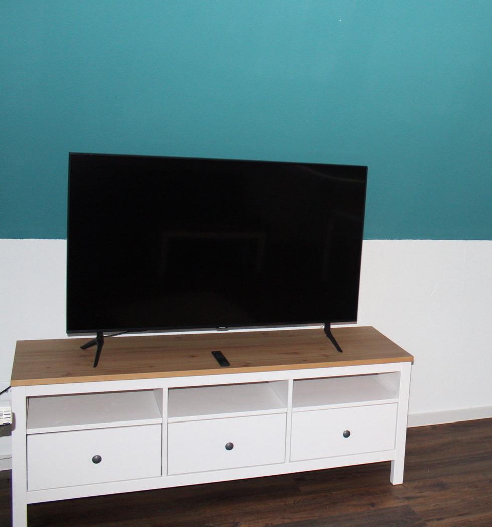 Zur Ausstattung der Ferienwohnung gehört u.a. ein 50Zoll Flachbildfernseher, ein Radio und W-LAN Empfang.