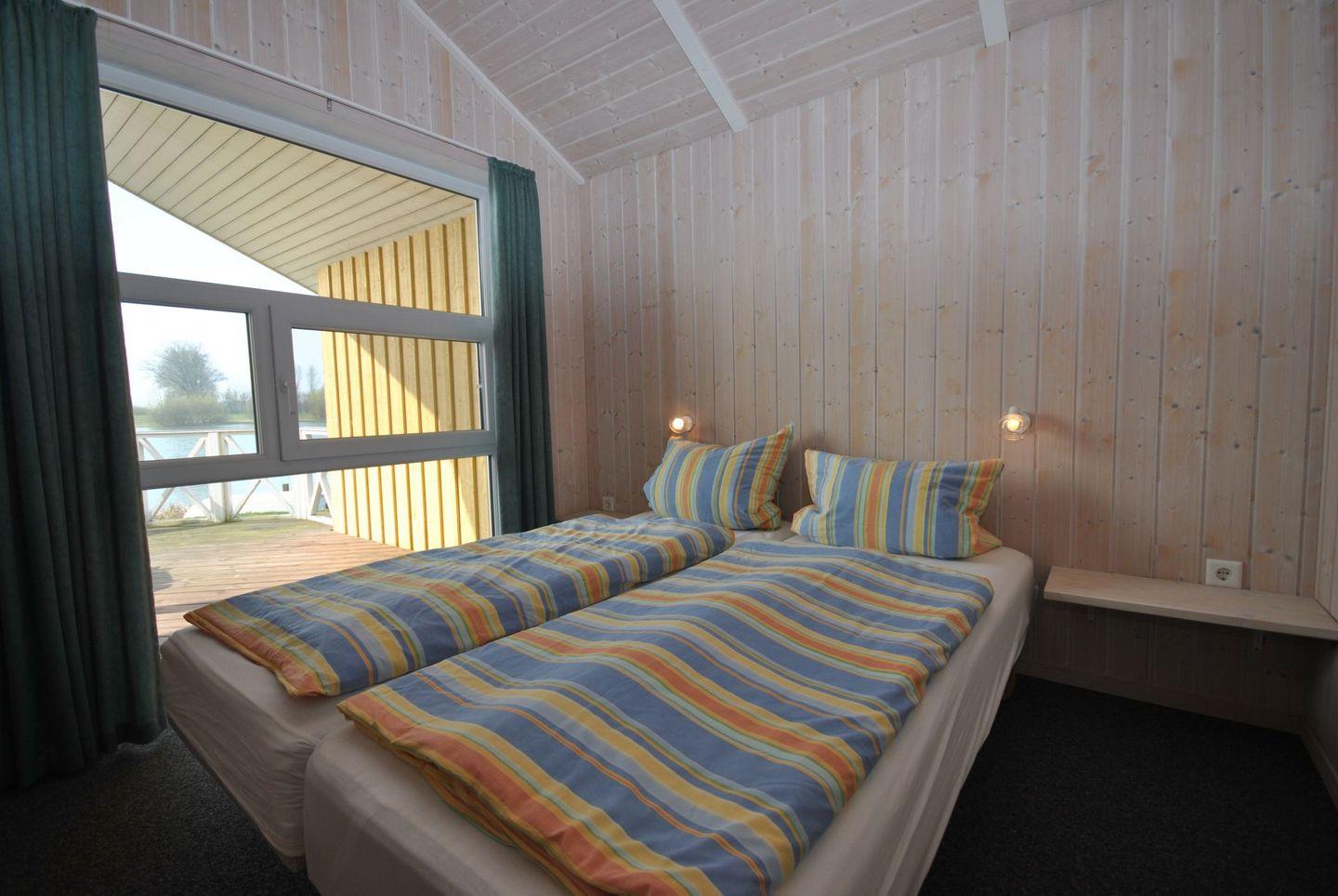 Gemütliches Ferienhaus im Ferienpark Seeland mit Sauna, Whirlpool und direkter Wasserlage für erholsame Tage.