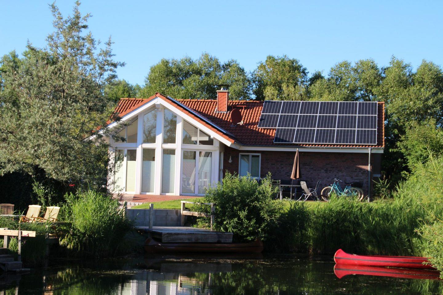 Komfortables, rollstuhlfreundliches Ferienhaus mit Sauna, Whirlpool und eigenem Bootssteg in ruhiger Lage nahe Strand und Spielplatz.