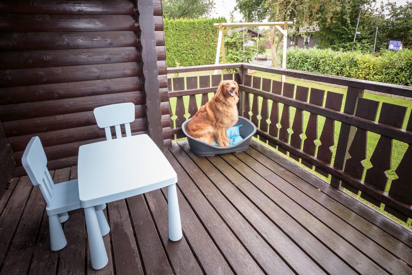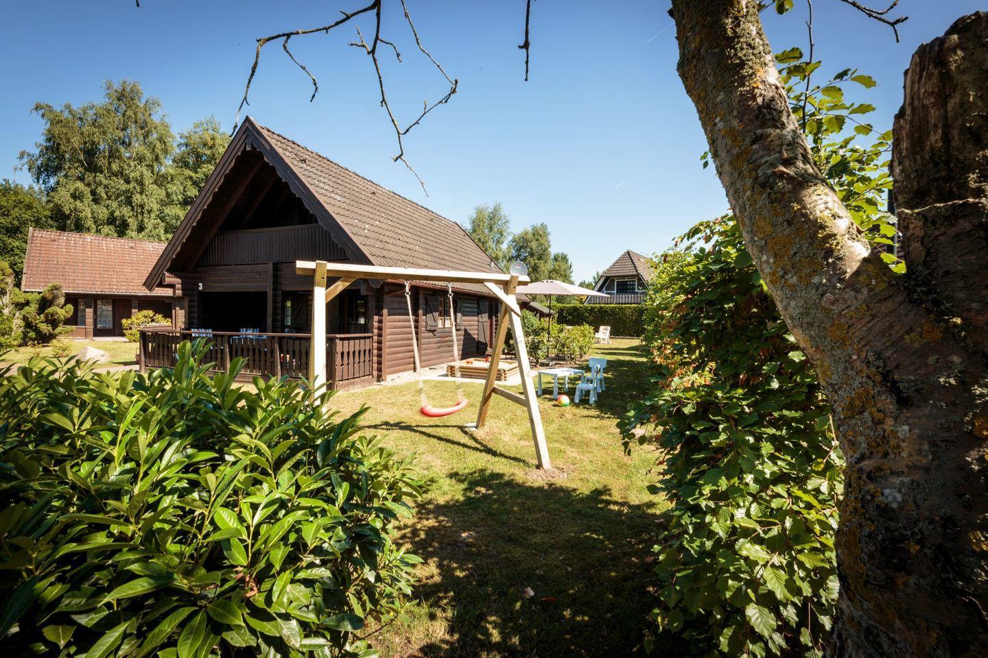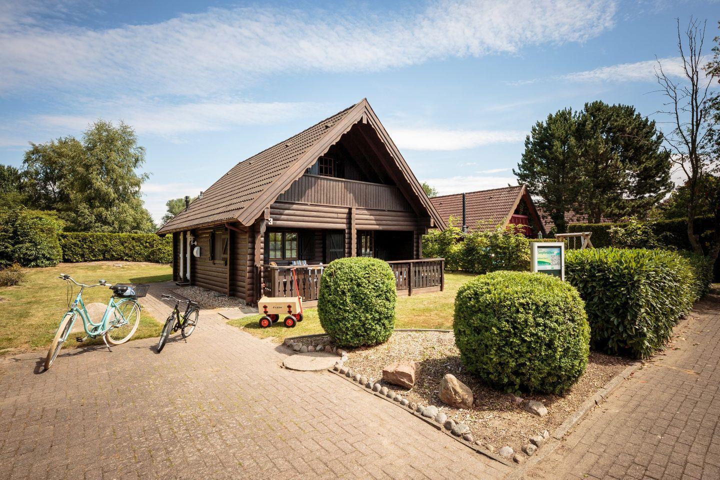 Gemütliches Blockbohlen-Ferienhaus im Ferienpark Achtern Diek mit moderner Ausstattung und familienfreundlicher Atmosphäre.