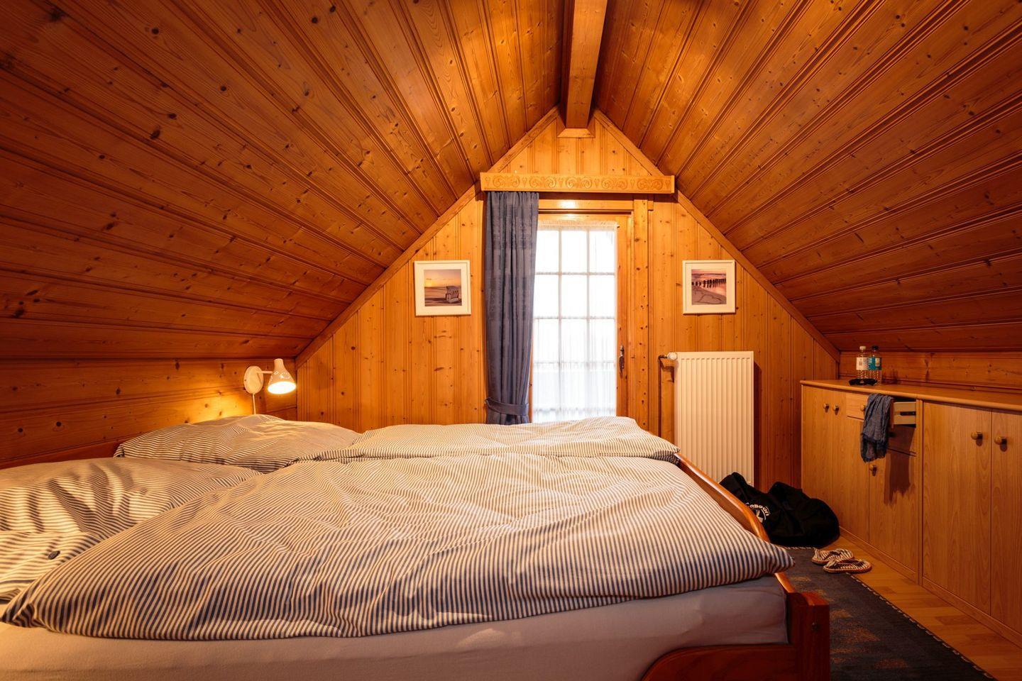 Das gemütliche Blockbohlen-Ferienhaus Seepferdchen bietet Platz für für bis zu 2 Erwachsenen und 2 Kinder. Im großzügigen Wohnraum finden Sie eine Essecke, eine Couchgarnitur mit Flachbildschirm und eine Küchenzeile mit Tresen. Die Küche ist vollständig ausgestattet. Hier finden Sie eine Geschirrspülmaschine, einen Kühlschrank mit Gefrierfach, ein Cerankochfeld mit Backofen, eine Mikrowelle, eine Pad-Maschine, ein Toaster und ausreichend Geschirr. Die nach Süden ausgerichtete überdachte Terrasse ist vom Wohnbereich zu erreichen. Das Badezimmer ist mit Dusche und WC ausgestattet. Im Obergeschoss befinden sich die beiden Schlafzimmer. Das Elternschlafzimmer verfügt über ein Ehebett und einen kleinen Balkon. Das Kinderschlafzimmer ist mit zwei einzeln stehenden Betten ausgestattet.