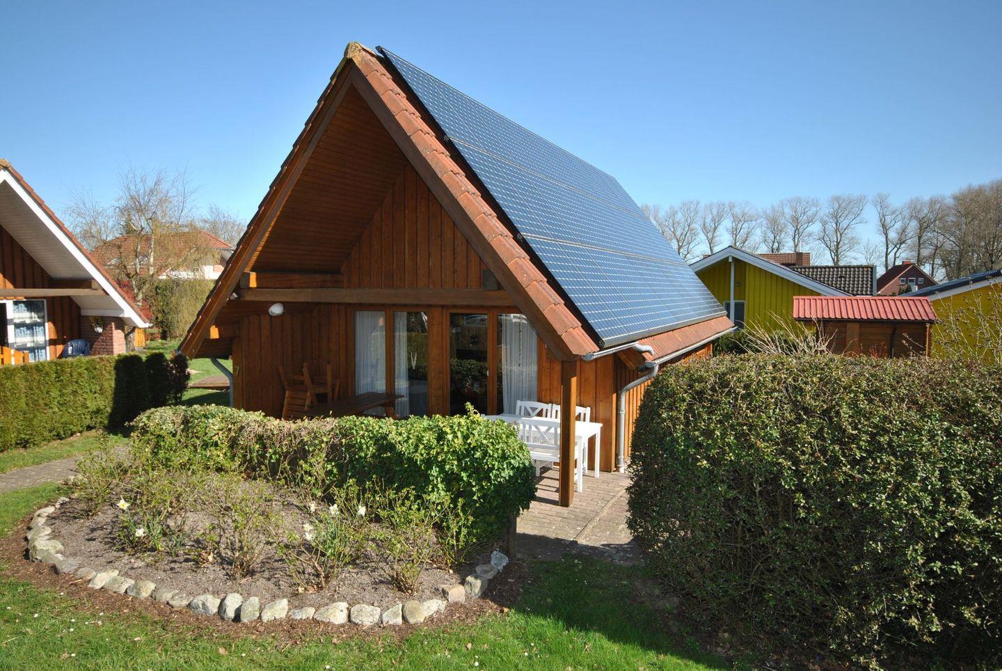 Komfortables Holzferienhaus mit überdachter Terrasse, Garten und vielfältigen Freizeitmöglichkeiten in Otterndorf.