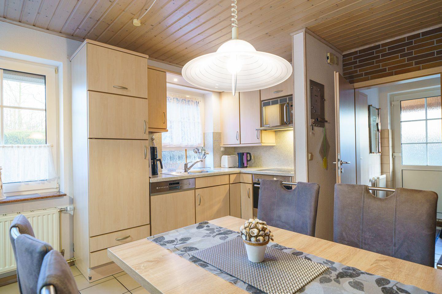 Das Haus verfügt über zwei komfortable Schlafzimmer, die sowohl Ruhe als auch einen erholsamen Schlaf garantieren. Im dem modernen Badezimmer finden Sie eine Dusche, auch gibt es ein zusätzliches Gäste-WC, in dem auch die Waschmaschine Ihren Platz findet, was besonders praktisch für Familien ist. Ein weiteres Highlight ist die gut ausgestattete Küche. Hier können Sie Ihre Lieblingsgerichte zubereiten und genießen. Ob Sie einen schnellen Snack oder ein vollwertiges Menü kochen, die Ausstattung lässt keine Wünsche offen – inklusive Backofen, Mikrowelle, Spülmaschine, Kaffeemaschine und Toaster.
