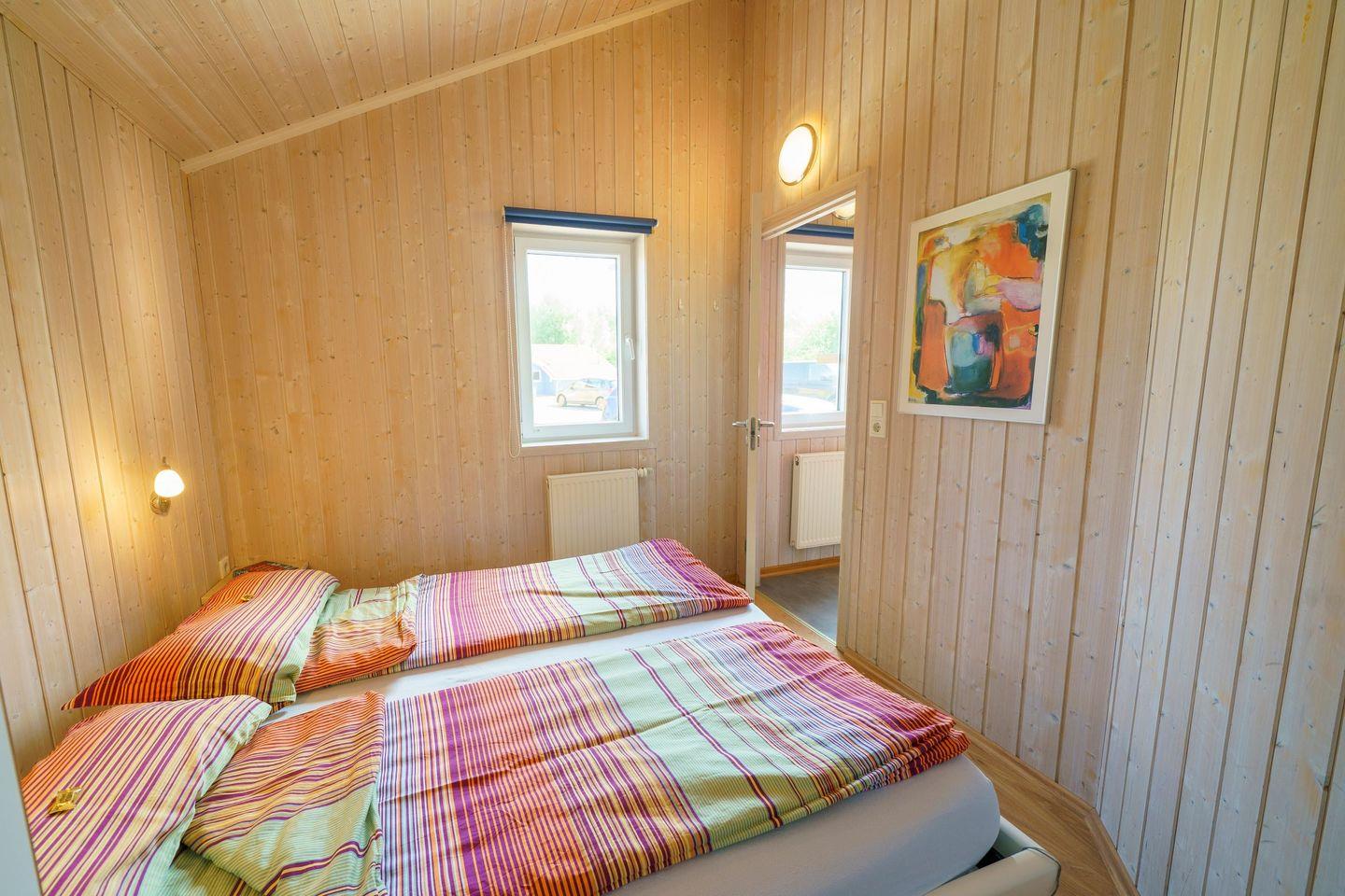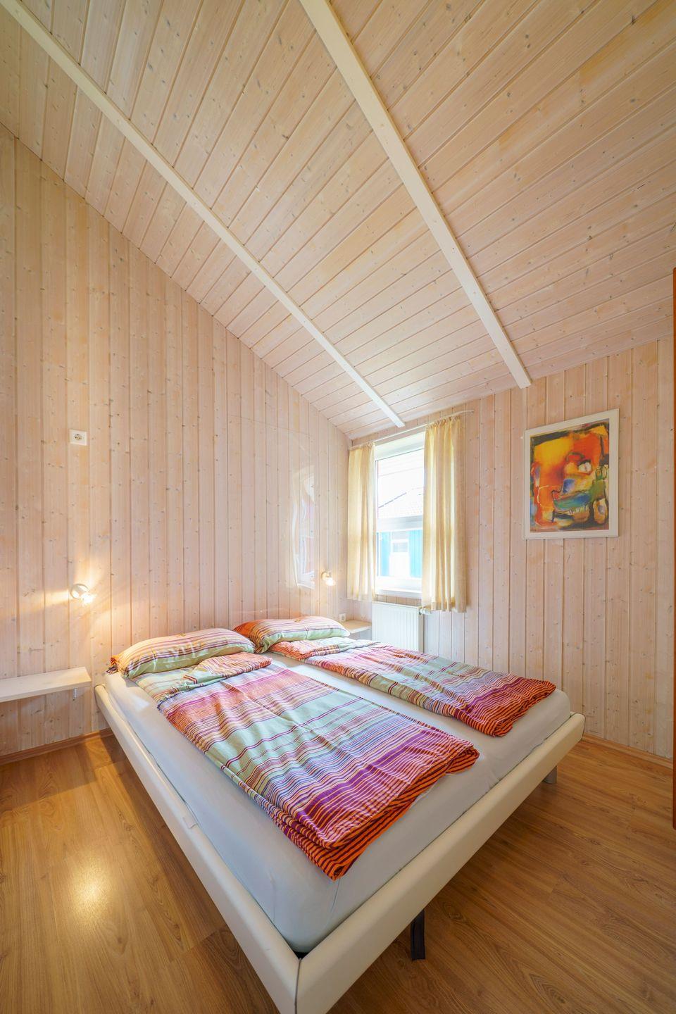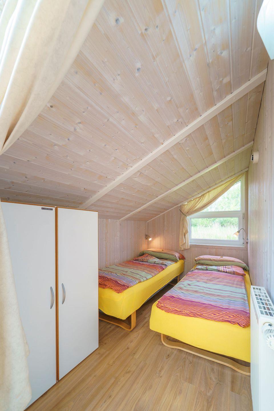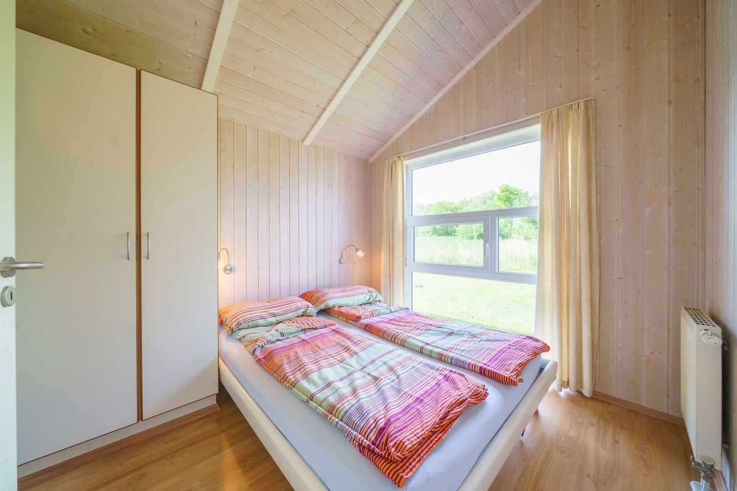 Alle 4 Schlafräume sind mit Doppelbetten für insgesamt 8 Personen eingerichtet. Zwei Schlafzimmer haben nur Platz für je 1 Kinderbett. Der Clou sind die 2 besonders von Kindern geliebten Alkoven, die gerne als Schlafhöhle bezeichnet werden. In jedem Alkoven befinden sich je 2 Einzelbetten, für Erwachsene berechnet. 2 Badezimmer mit je einem Haartrockner machen auch den Aufenthalt von mehreren Personen angenehm. An allen Fenstern sind Fliegengitter befestigt. Außerdem steht den Gästen ein Kanu, sowie ein Kanuwagen zum Transport zur freien Verfügung. Große und Kinder-Schwimmwesten sind vorhanden. Der See ist 40 m vom Haus entfernt. Die Nutzung geschieht auf eigene Verantwortung. Für Kinder ist ein Klettergerüst mit Rutsche, Kletterseil und 2 Schaukeln vorhanden, es wird mit den Gästen vom linken Ferienhaus Nr. 66 gemeinsam genutzt.