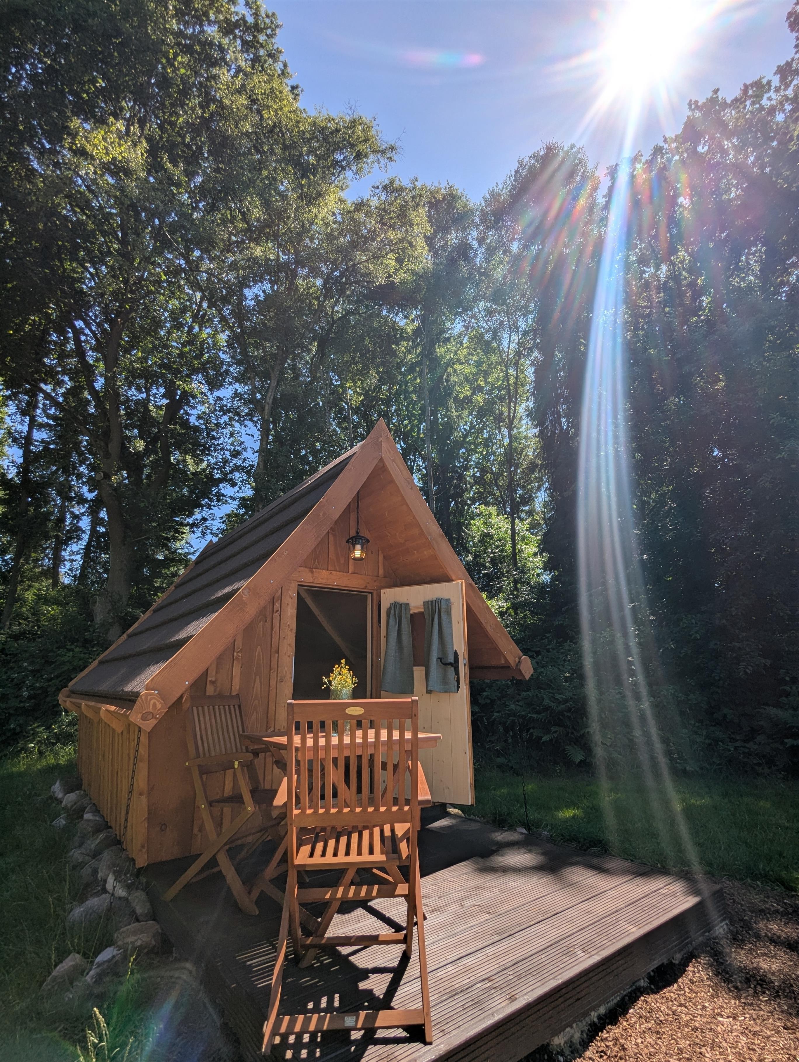 Auf 11 qm finden sie eine einfache aber komfortable Ausstattung mit Doppelbett und Schrank. Die Sanitäranlagen des Campingplatzes sind ca. 100 m entfernt.