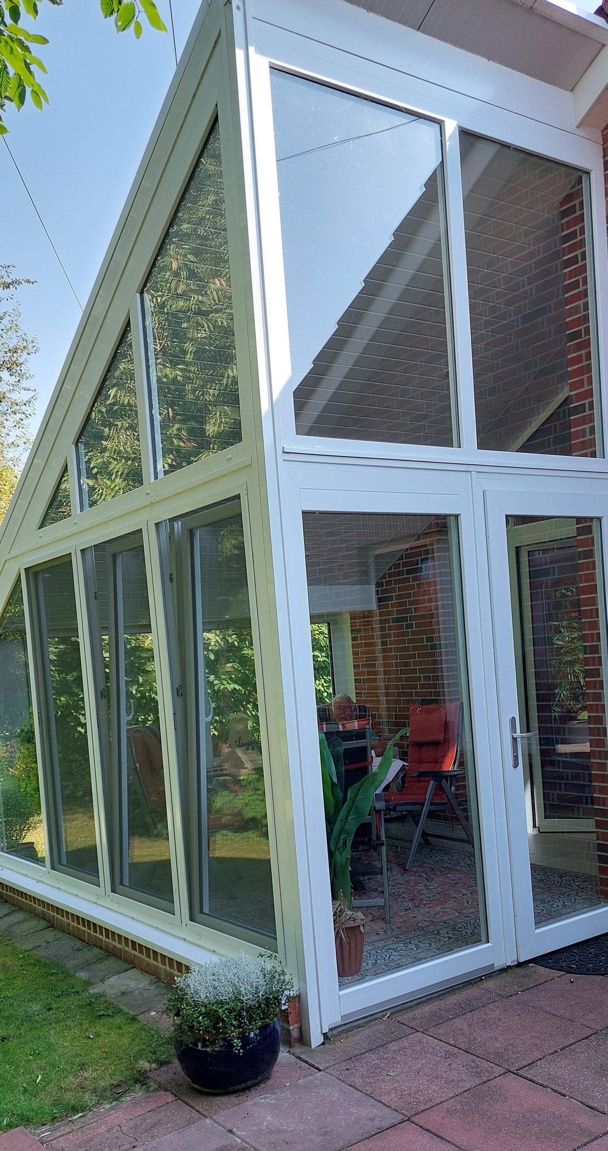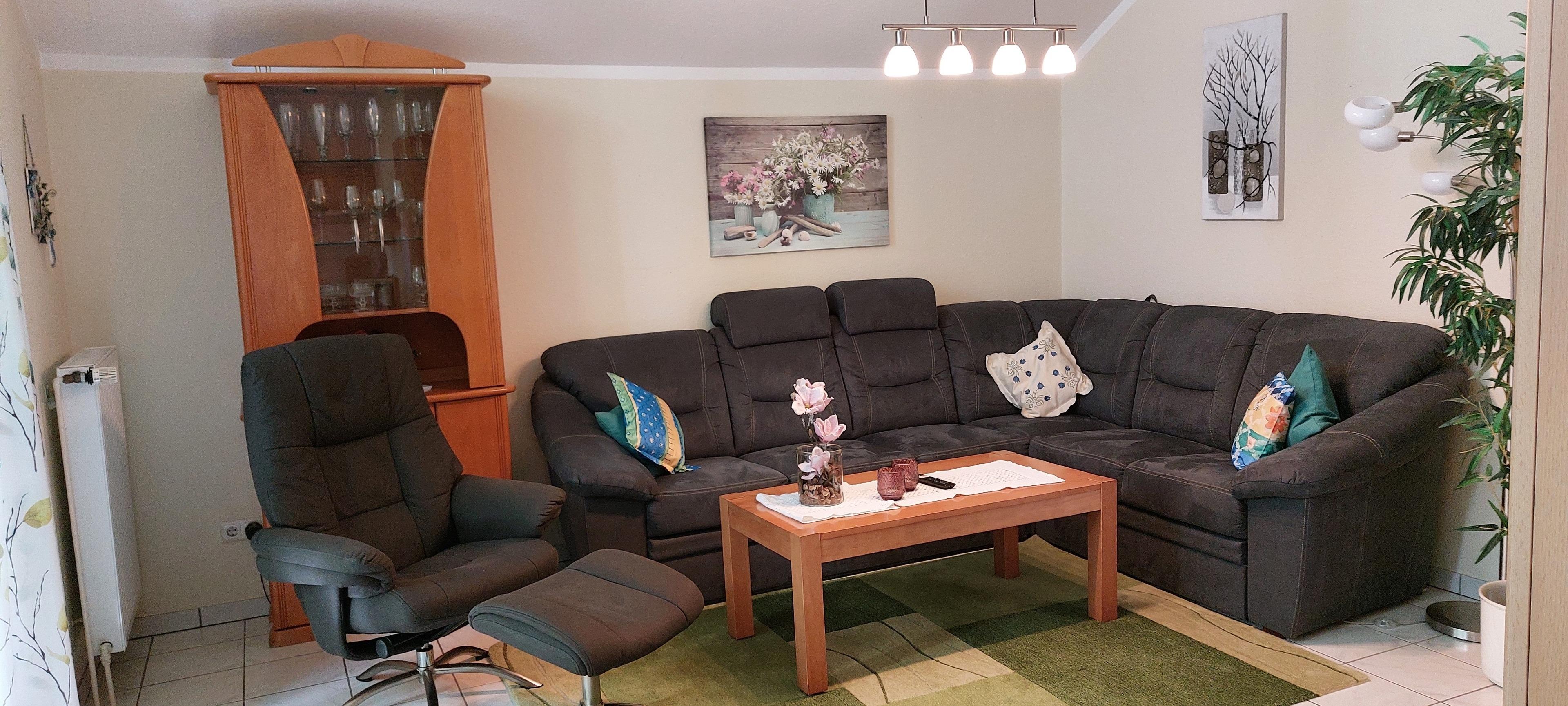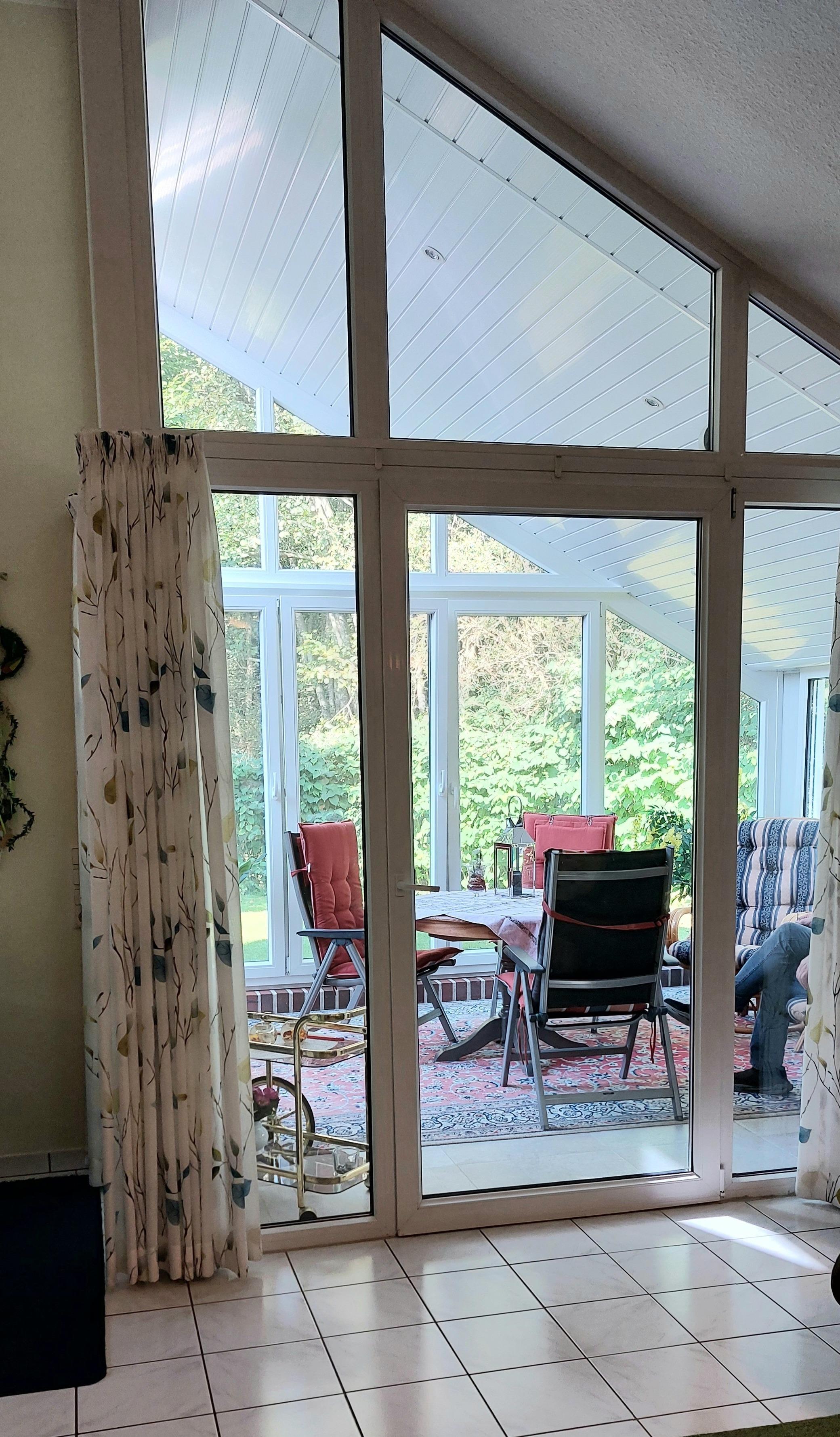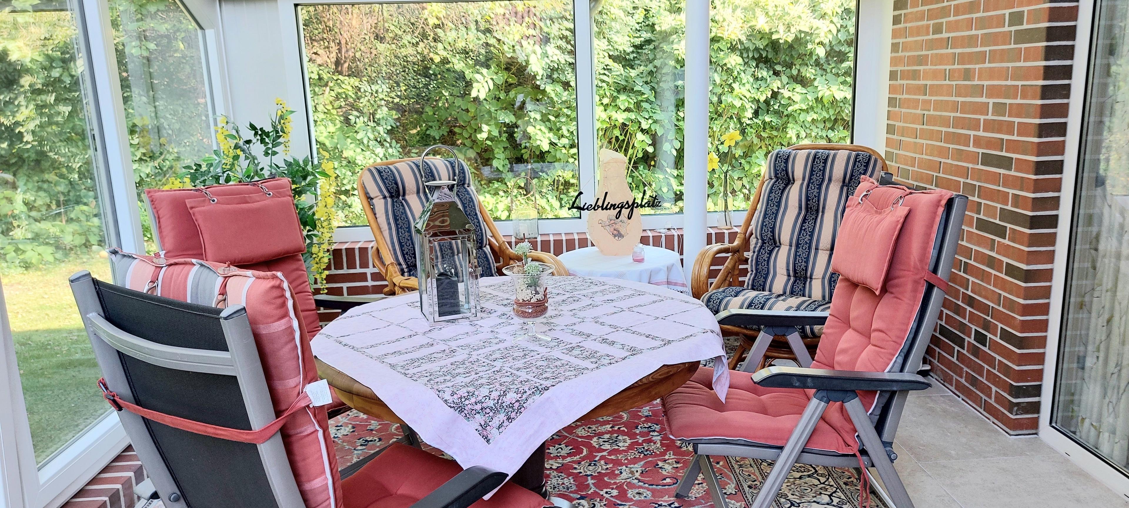 Vom gemütlich eingerichteten Wohnbereich haben Sie einen wunderbaren Blick in den Garten und zum Teich mit dem dahinter gelegenen Naturschutzgebiet. Die Terrasse mit Gartenmöbeln und bequemen Auflagen, Grill und Strandkorb laden zum Verweilen ein. Insektenschutzgitter an Fenster und Terrassentür verhindern das Eindringen von Insekten. Ihre Fahrräder werden sicher im abschließbaren Blockhaus (mit E-Bike Ladestation) neben den Parkplätzen verwahrt.