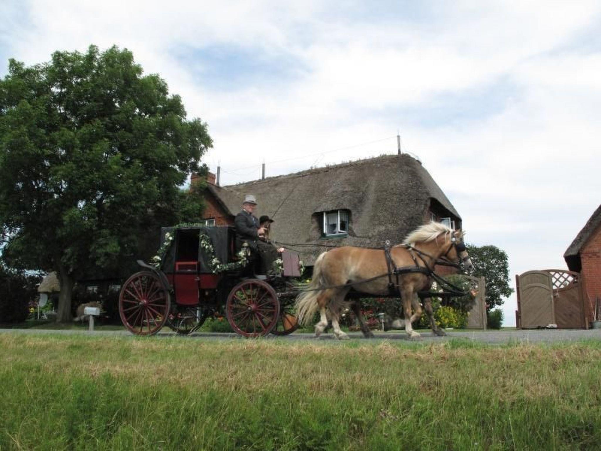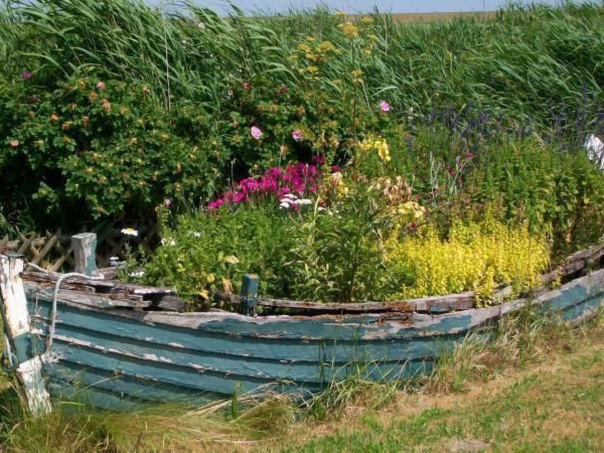 Charmantes reetgedecktes Ferienhaus auf Pellworm, ideal für Paare, mit Garten und Terrasse in ruhiger Lage nahe Meer.