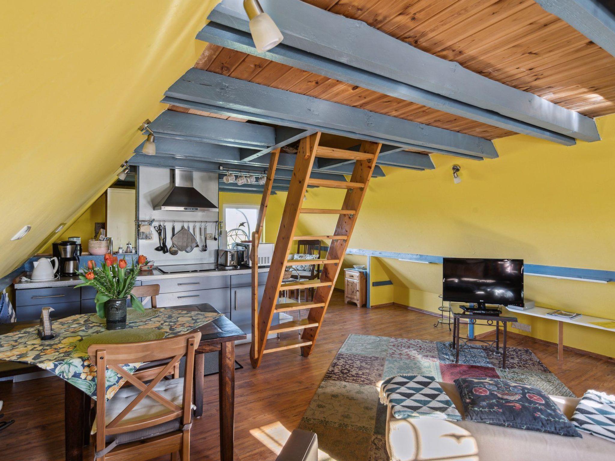 Innen erwartet Sie ein gemütliches Ambiente, das zum Verweilen einlädt. Der Wohn-, Ess- und Schlafbereich im Dachgeschoss ist harmonisch aufeinander abgestimmt. Eine Couch, die zugleich als Schlafcouch fungiert und ein Sat-TV sorgen für Komfort und Unterhaltung. Die Küche ist mit allem ausgestattet, was Sie für die Zubereitung von Mahlzeiten benötigen, einschließlich einer Kaffeemaschine, Filter-Kaffeemaschine, Spülmaschine, und einem Wasserkocher. Ein Doppelbett in einer gemütlichen Alkove lädt zum Träumen ein, während das Badezimmer im Erdgeschoss mit teilweiser Fußbodenheizung und einem Handtuchwärmer ausgestattet ist.