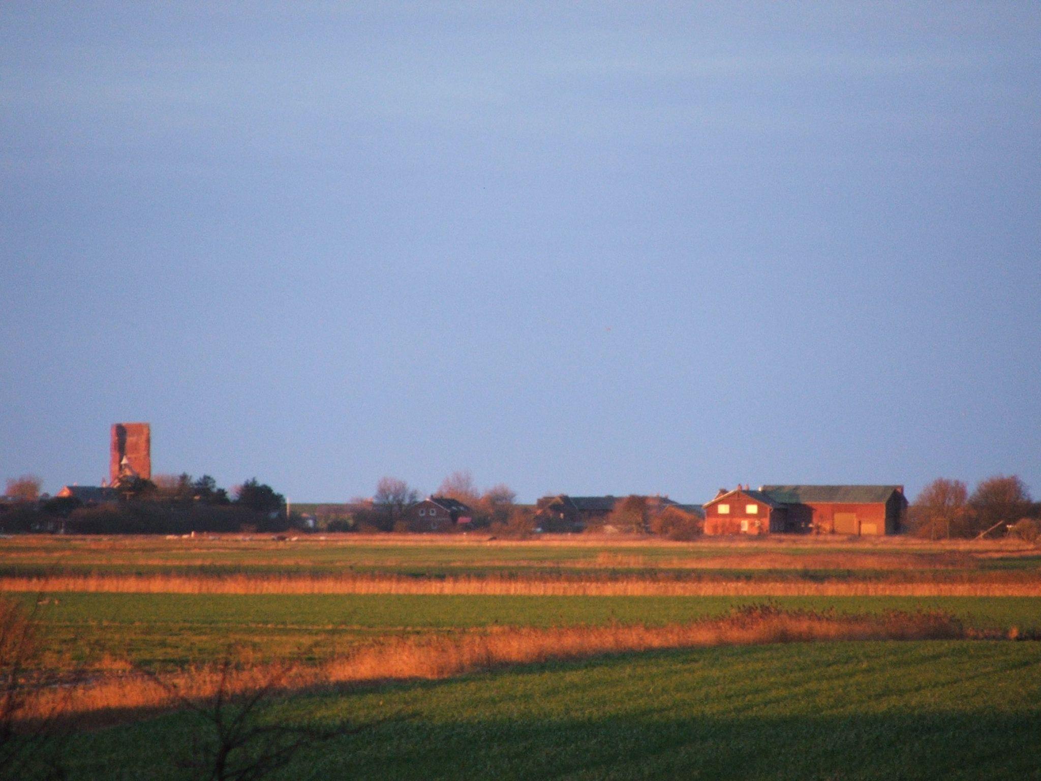Die Ferienwohnung mit Inselpanorama (4 Sterne) befindet sich in einem Privathaus im ersten Obergeschoss in absolut ruhiger Lage auf einer Warft und verfügt über einen separaten Eingang. Sie ist in Sichtweite der historischen Alten Kirche und der "Hooger Fähre“gelegen. Genießen Sie einen freien Blick in alle Himmelsrichtungen.