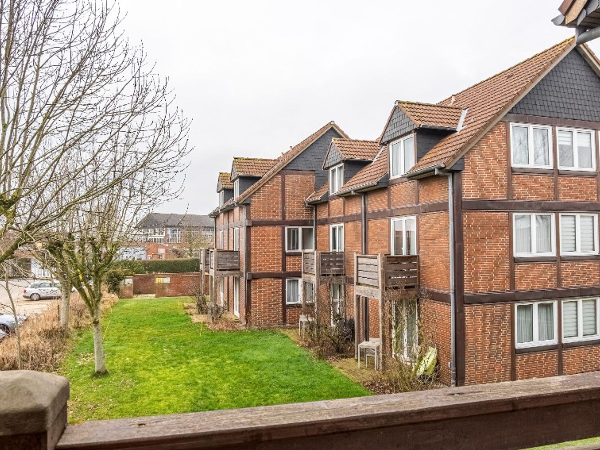 Eine weitläufige Grünanlage rahmt die Häuser im Fachwerkstil ein und schafft eine Oase der Ruhe. Liegewiesen und Grünanlagen laden zum Entspannen und Verweilen ein.