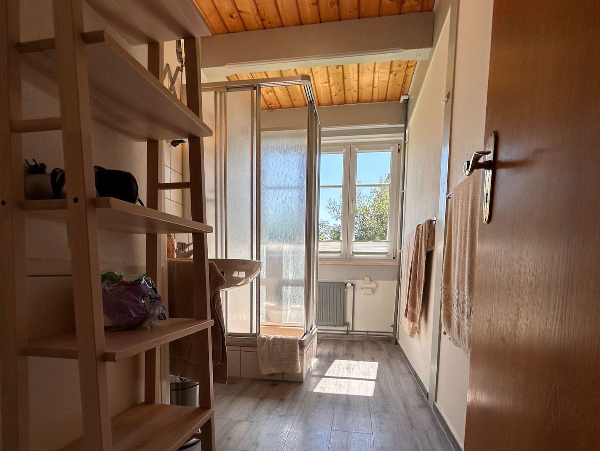 Im Badezimmer gibt es eine Dusche und ein WC.