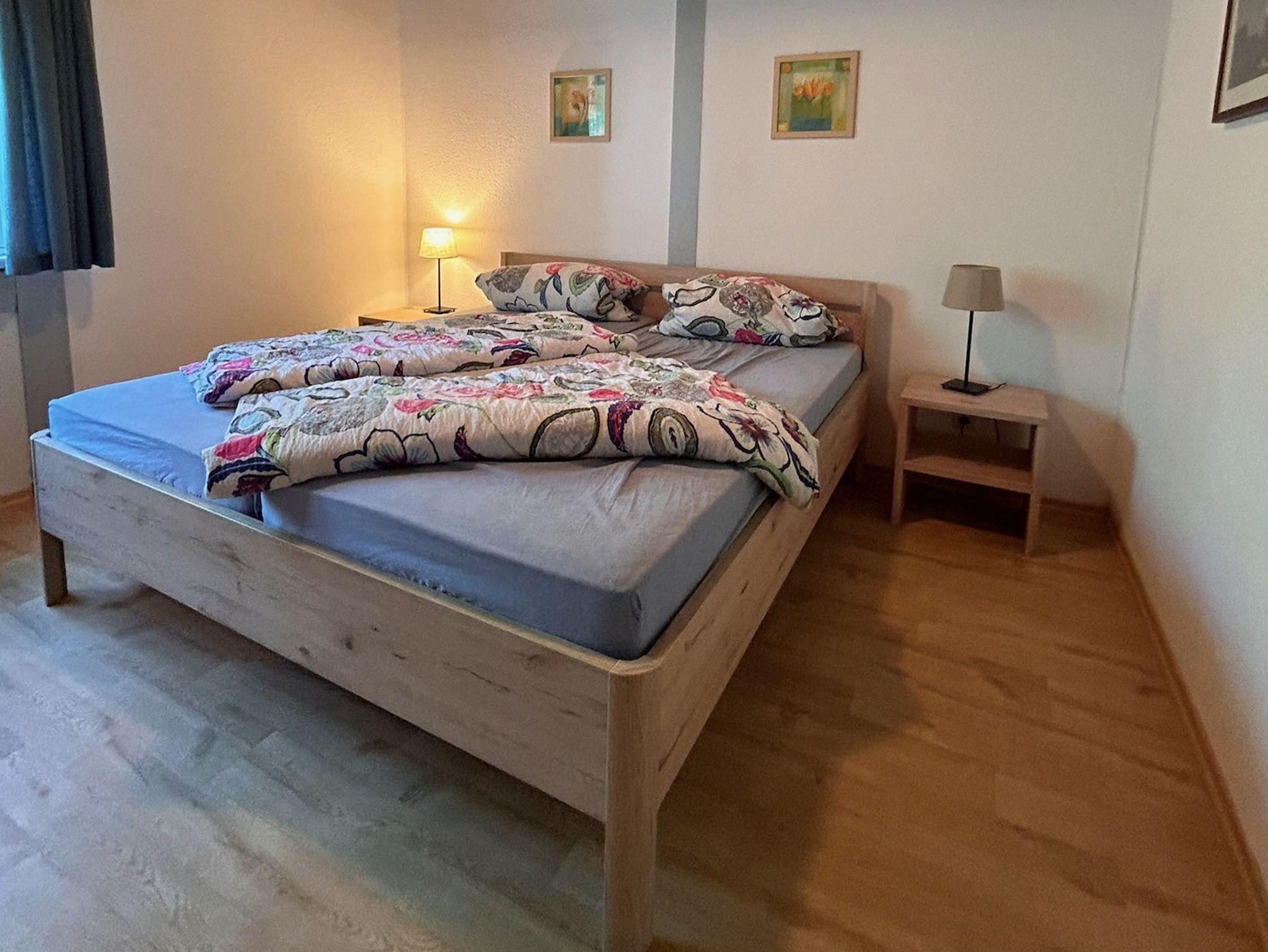 Im Schlafzimmer befindet sich ein Doppelbett. Ein Babybett kann auf Anfrage zusätzlich gestellt werden.