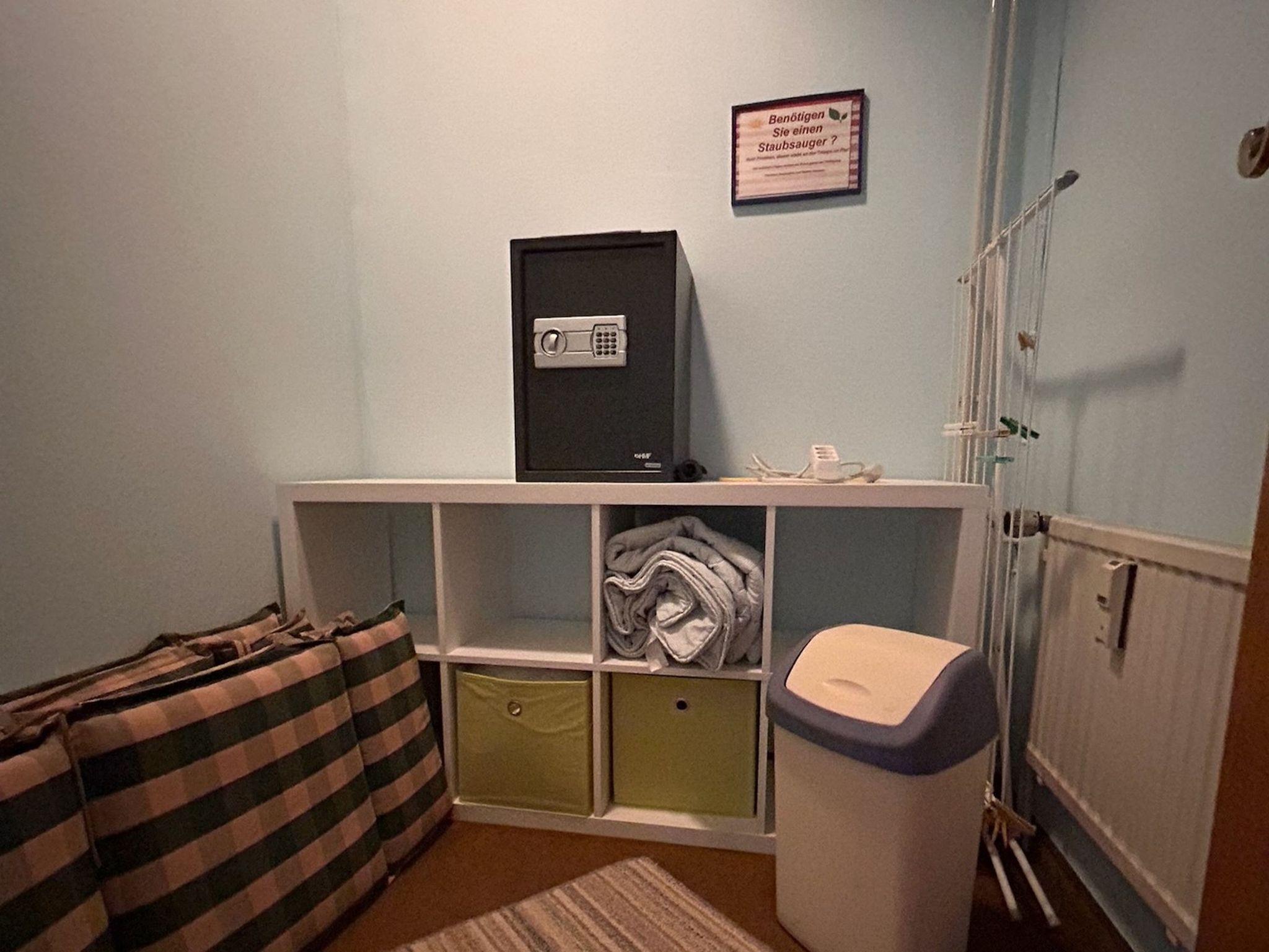 Eine Waschmaschine und ein Wäschetrockner können gegen eine Gebühr genutzt werden.
