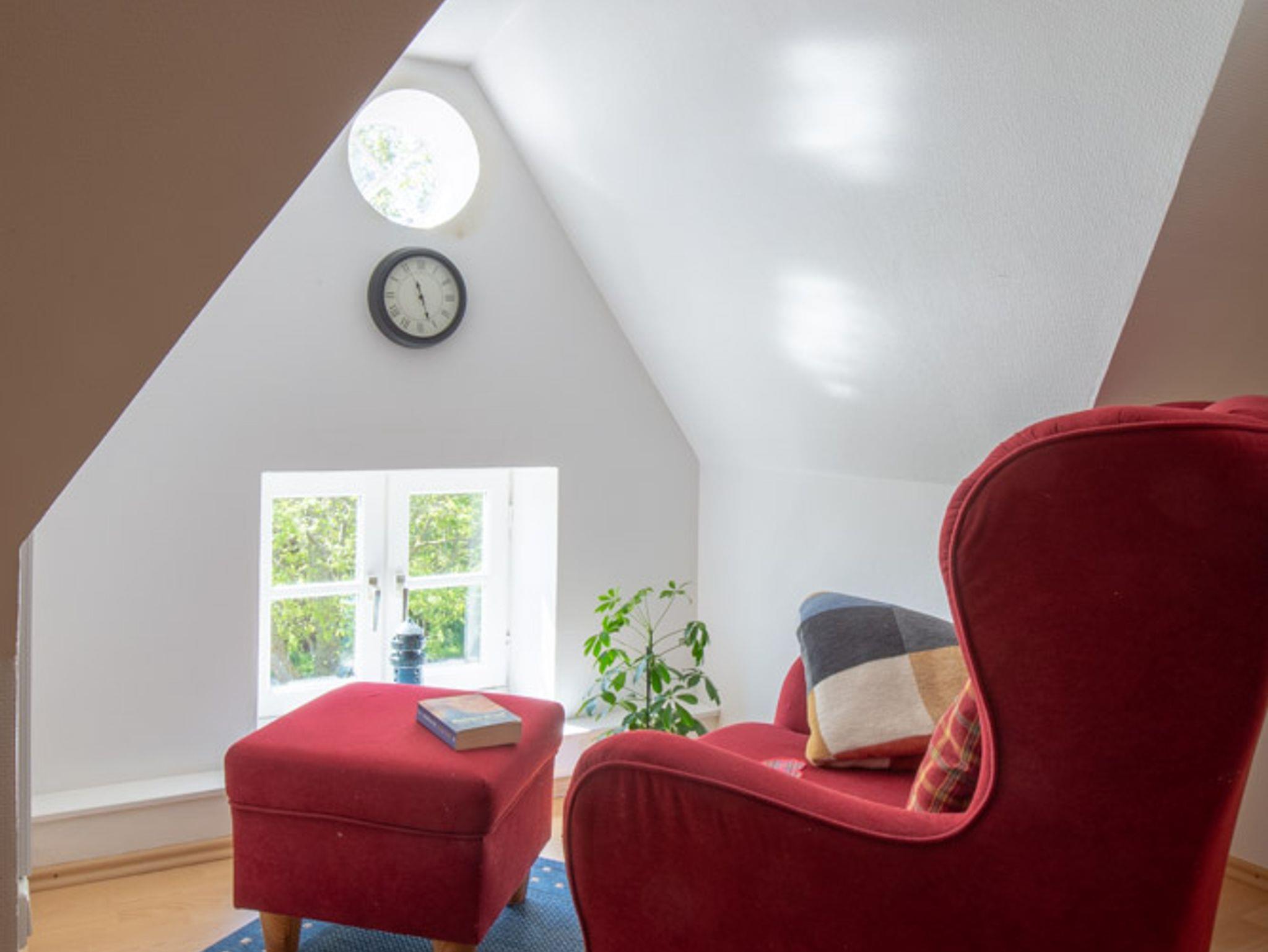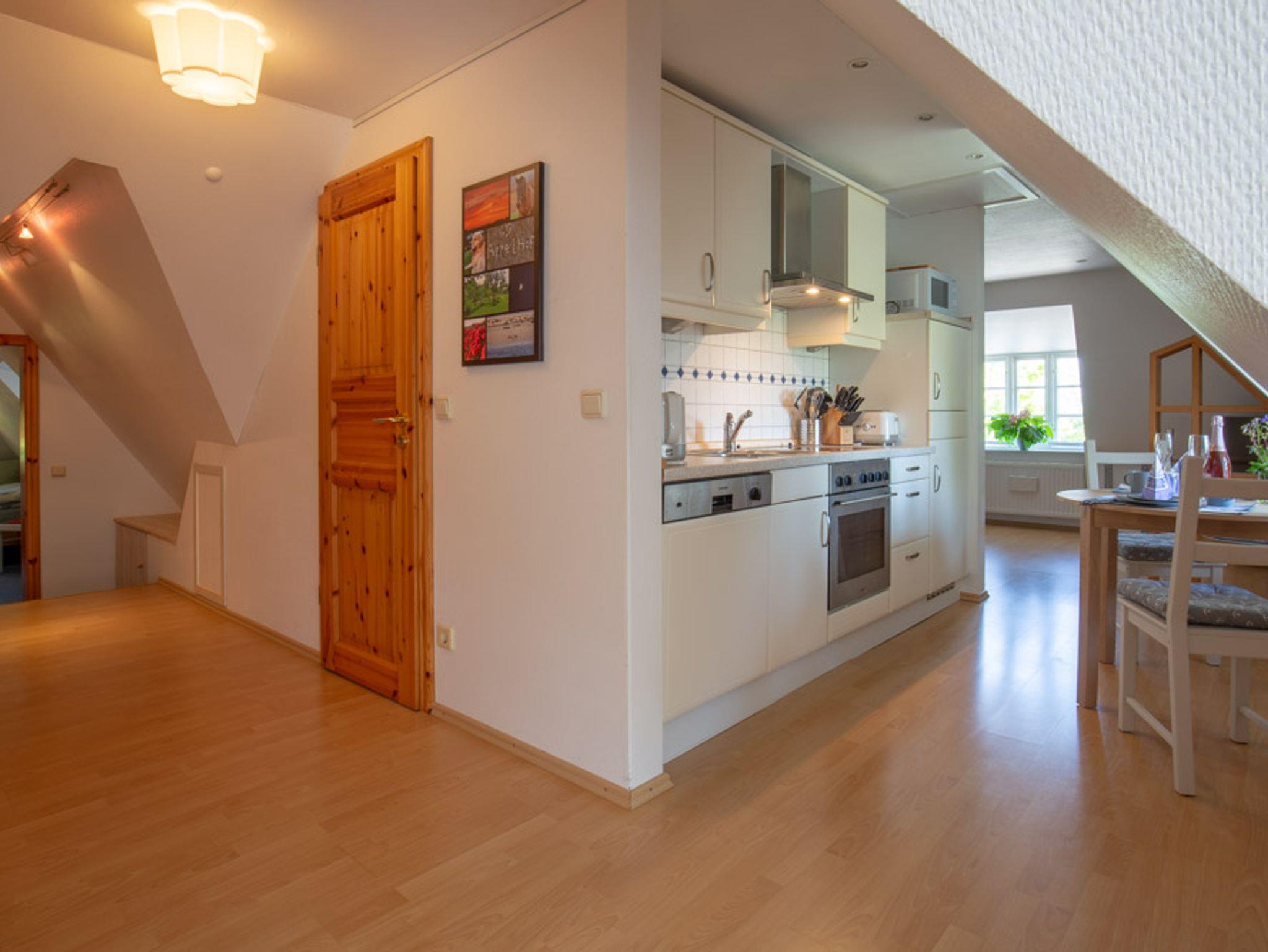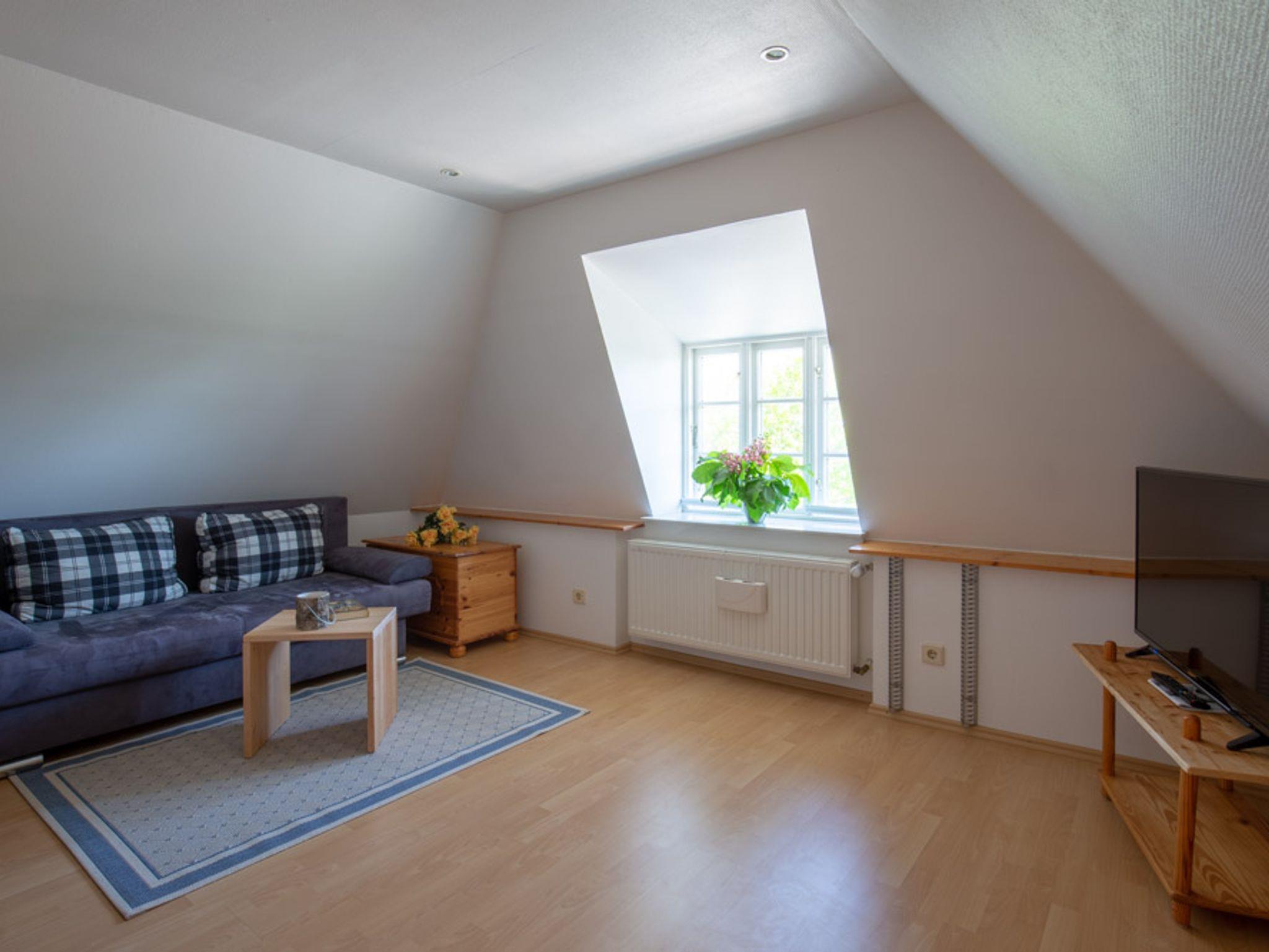 Die Fewo Cox im Dachgeschoss des Appelhus ist ausgelegt für 2 Personen. Sie beinhaltet ein Schlafzimmer, Abstellkammer, separate Leseecke und eine Küchezeile sowie Dusche/WC. Im Wohnraum befindet sich eine Schlafcouch.