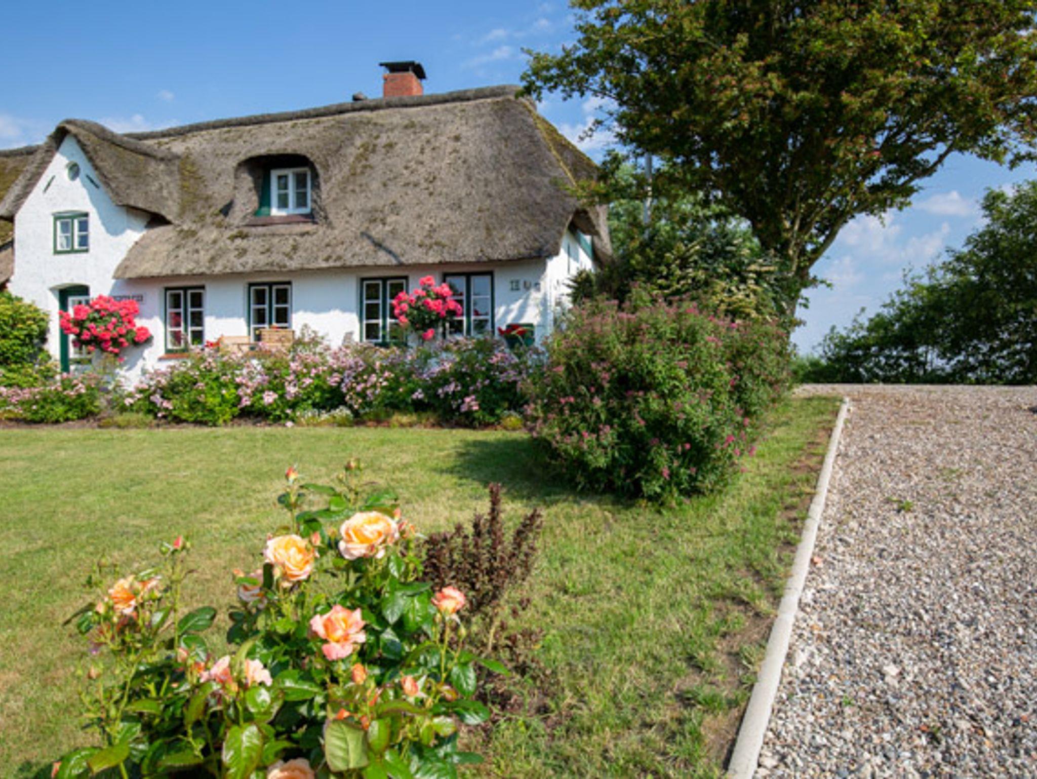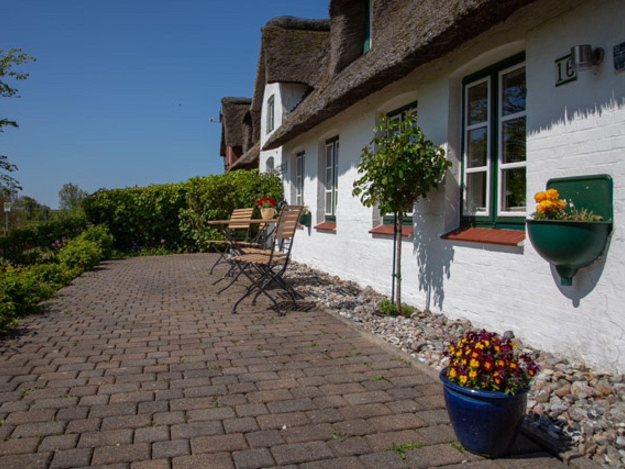 Ruhe, Entspannung und Entschleunigung im Appelhus, einer historische Reetdach-Doppelhaushälfte mit 2 Ferienwohnungen. Auf einem Mitteldeich gelegen, mit Süd- und Ost-Terrasse und Blick auf Deich, Leuchtturm und die Insellandschaft. Kleiner, ruhiger Garten mit kleinem Spielplatz, Strandkörben, Sitzplatz und Grillhütte. Großer Parkplatz, Fahrradständer und einem hübschen Blumengarten.