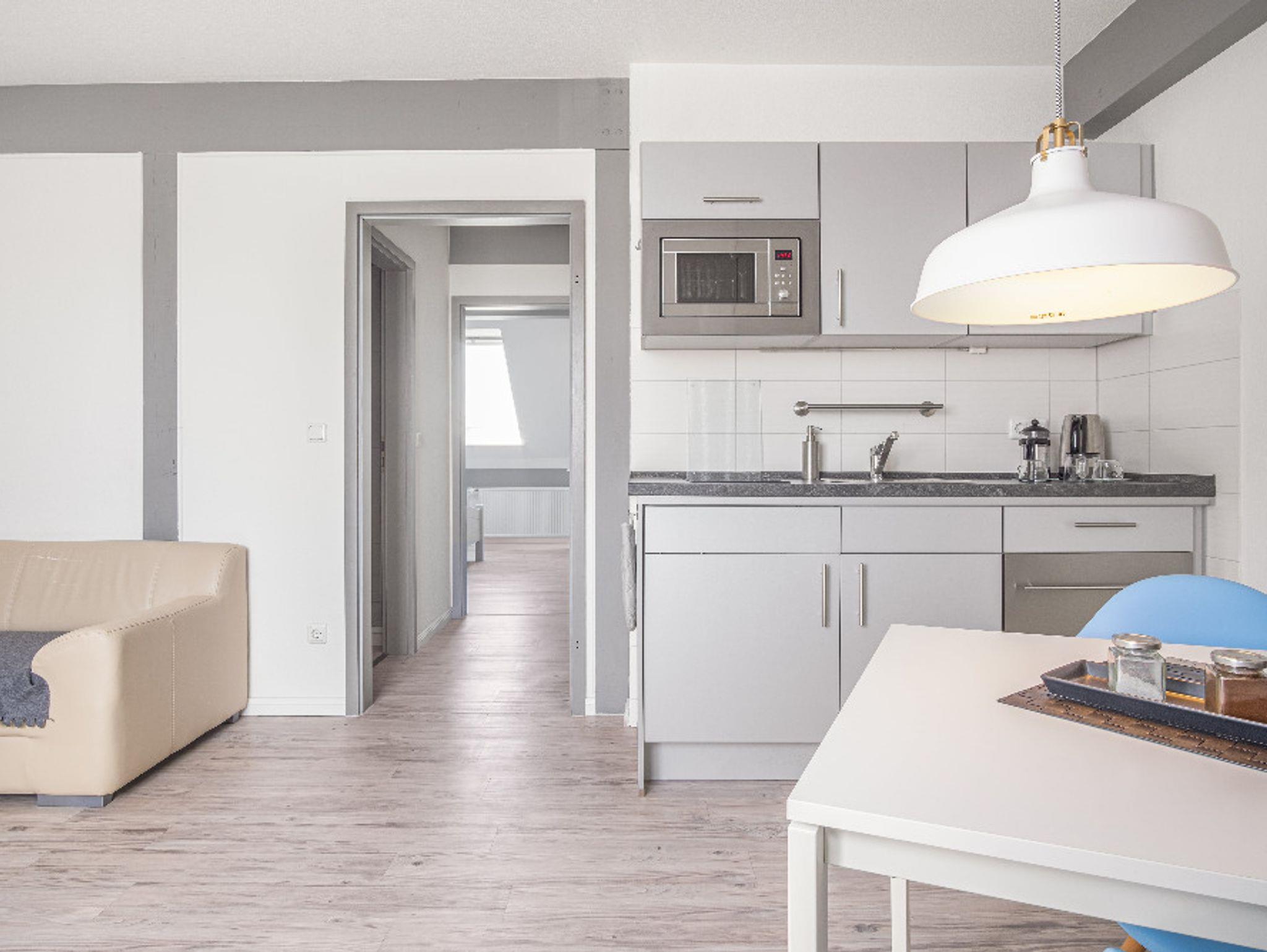 Auf 40 Quadratmetern bietet Dir Deine Unterkunft alle Annehmlichkeiten, die Du für den perfekten Urlaub benötigst: eine voll ausgestattete Küchenzeile mit Geschirrspüler und Kaffeemaschine - eine Mikrowelle, Toaster, Kühlschrank und ein Wasserkocher sind ebenfalls vorhanden.