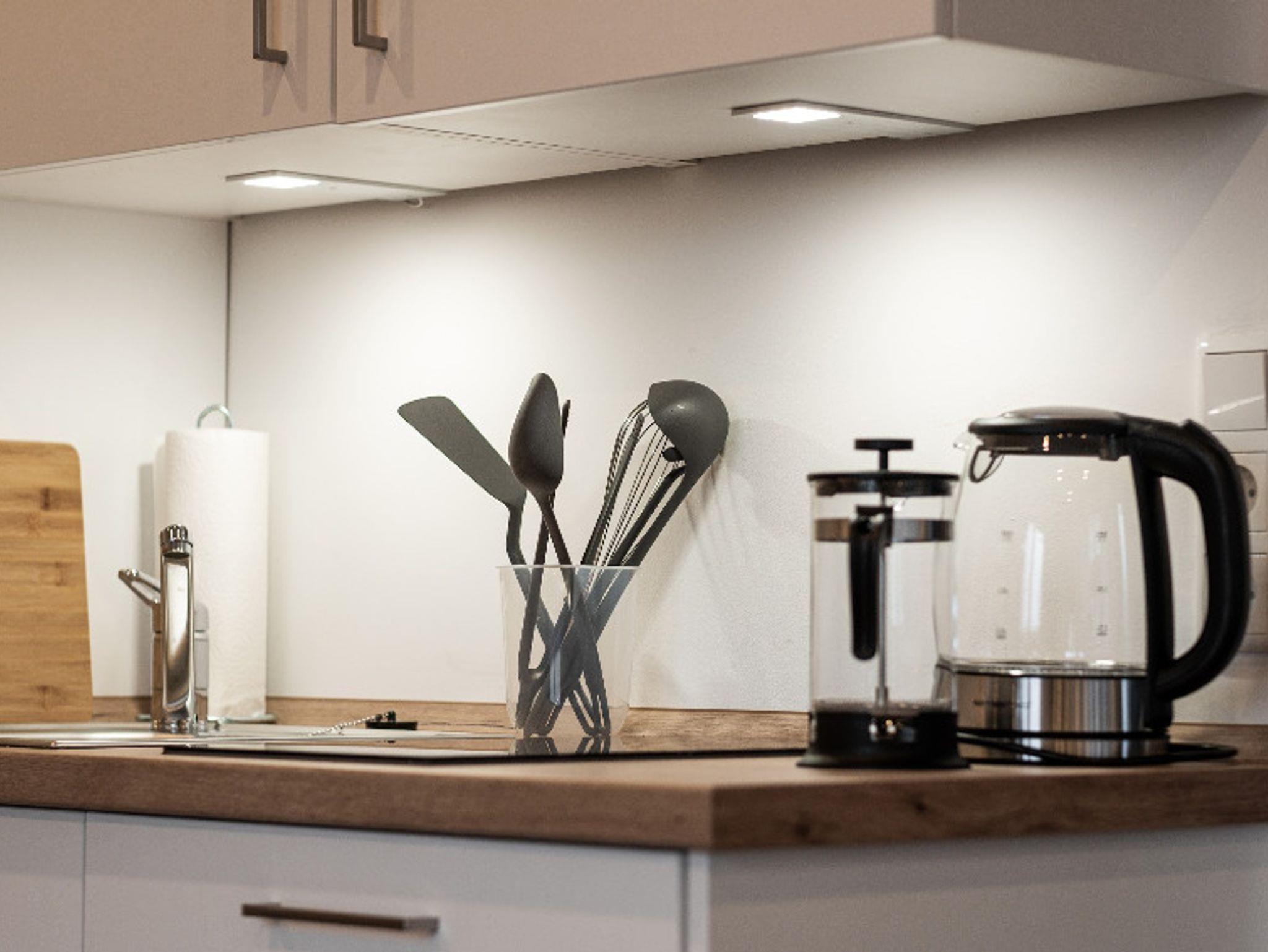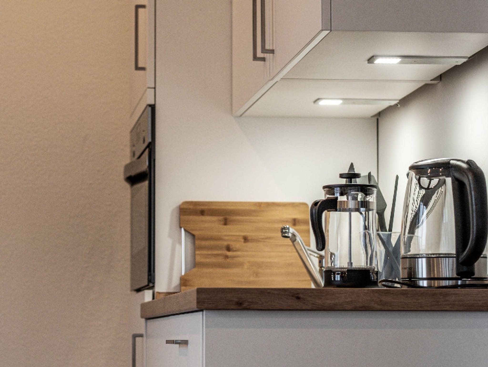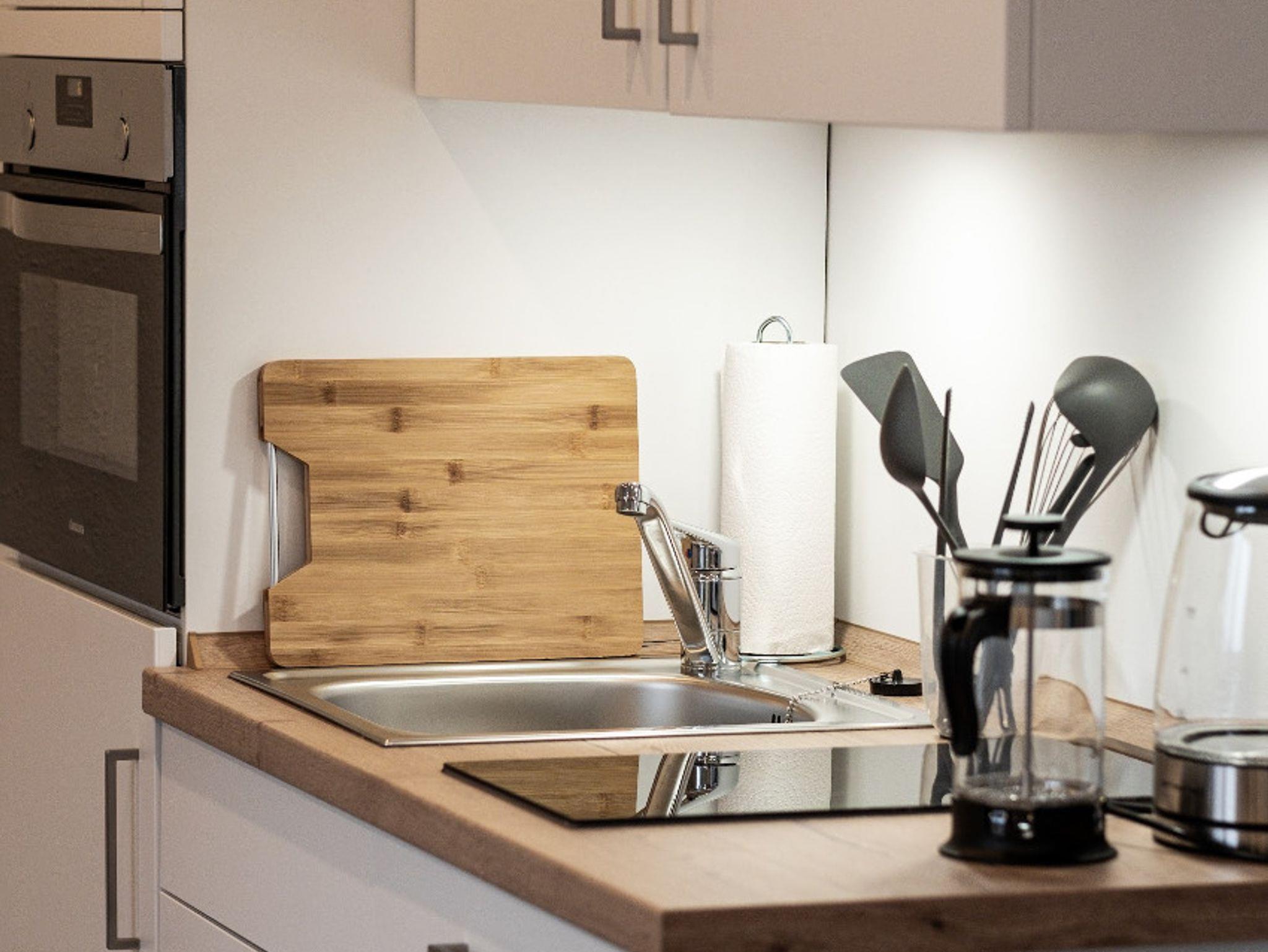 Auf 40 Quadratmetern bietet Dir Deine Unterkunft alle Annehmlichkeiten, die Du für den perfekten Urlaub benötigst: eine voll ausgestattete Küchenzeile mit Geschirrspüler und Kaffeemaschine - eine Mikrowelle, Toaster, Kühlschrank und ein Wasserkocher sind ebenfalls vorhanden.