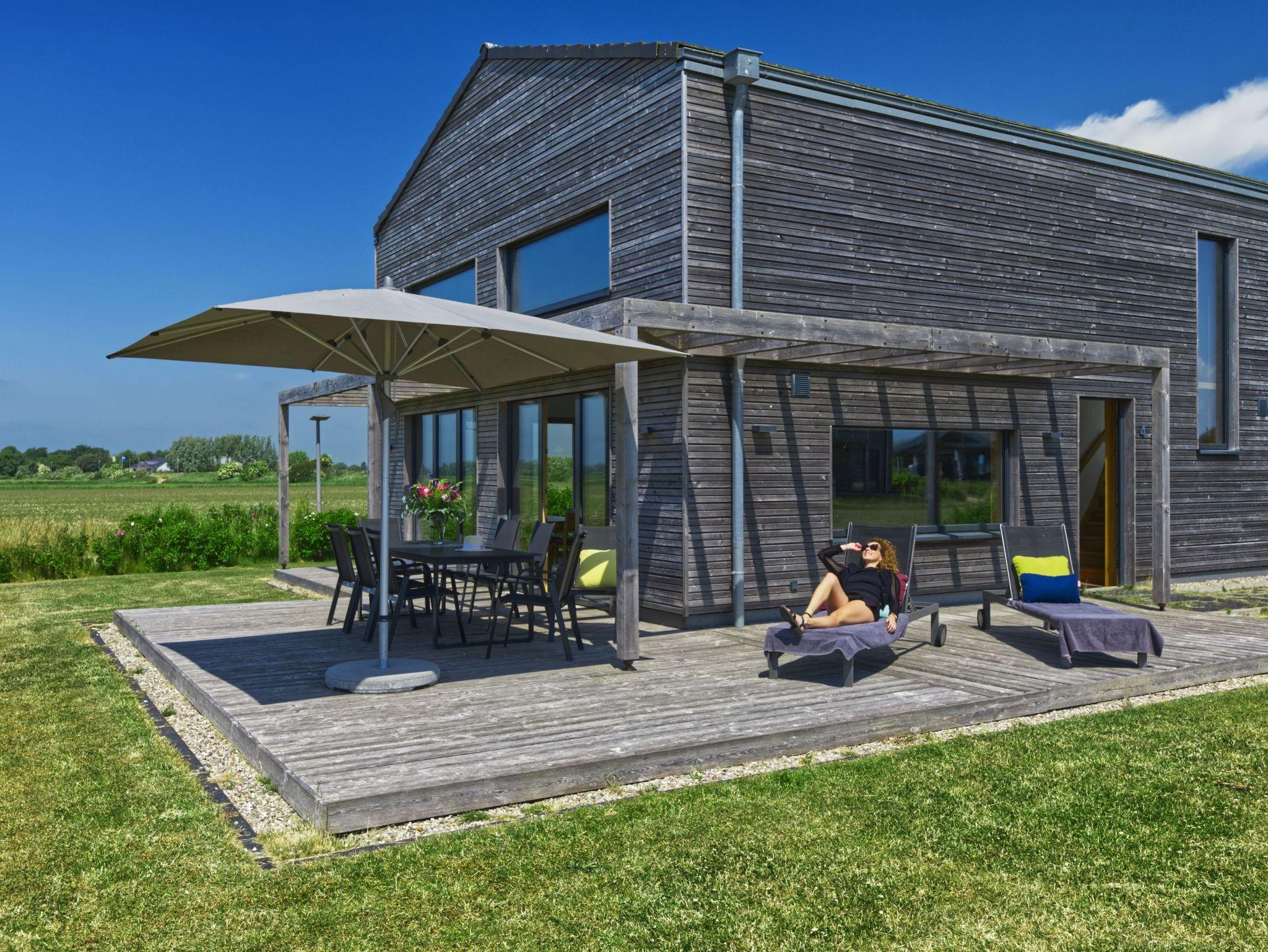 Luxuriöses Designferienhaus auf Pellworm mit Sauna, großer Terrasse und nachhaltiger Bauweise für erholsame Familienzeit.
