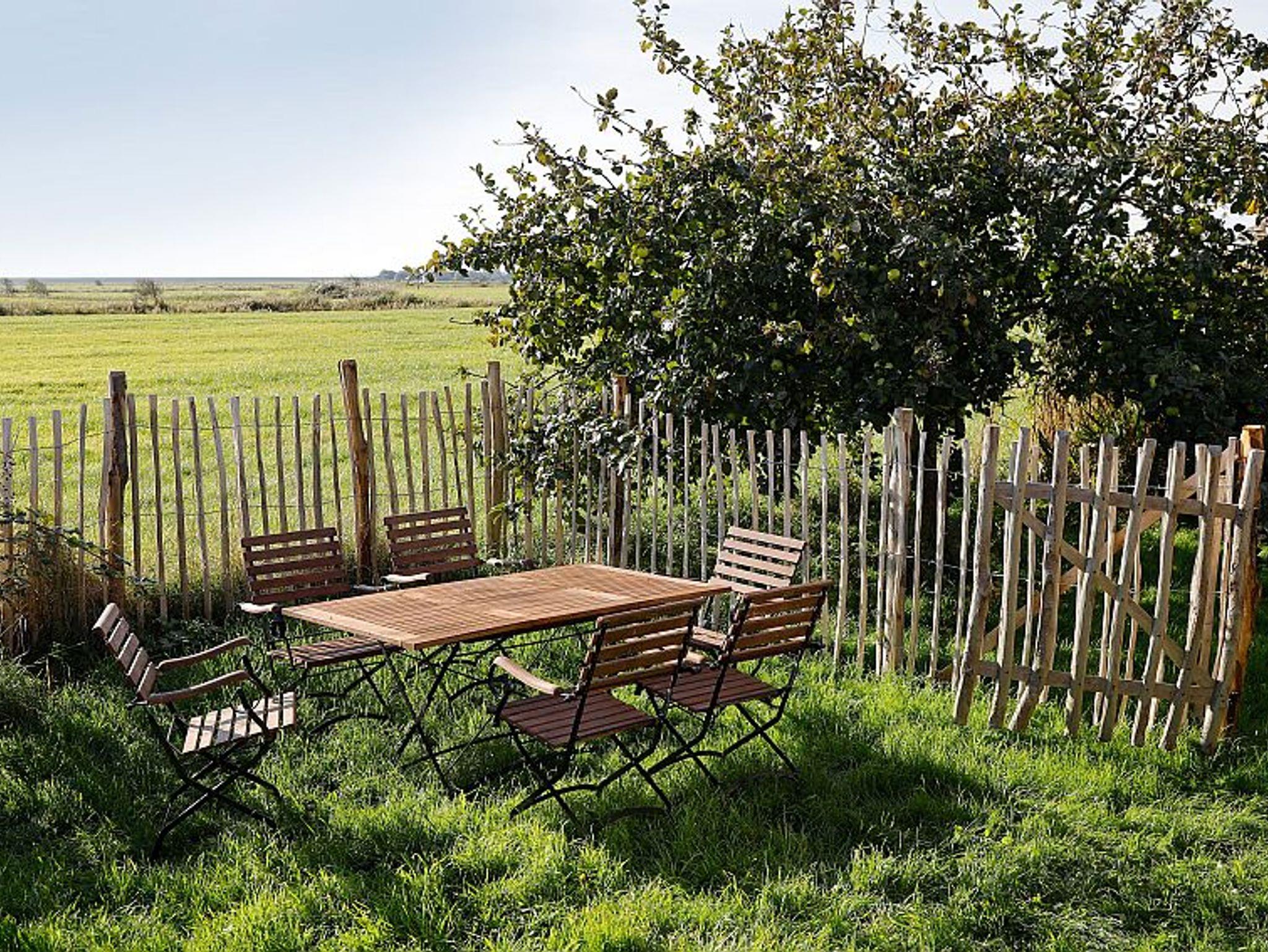 Charmantes reetgedecktes Friesenhaus mit Terrasse, Garten und Blick über die Marsch auf Pellworm.