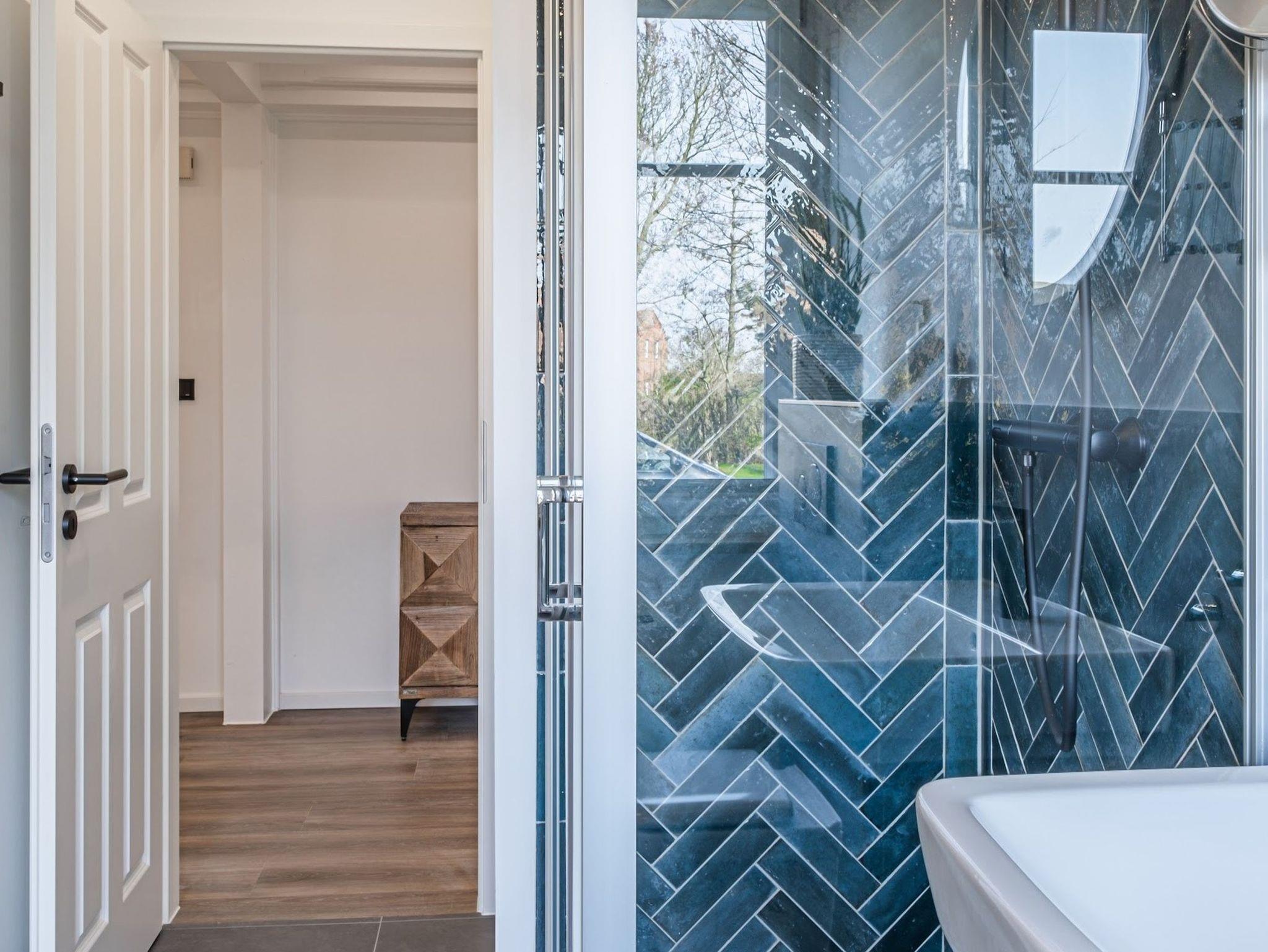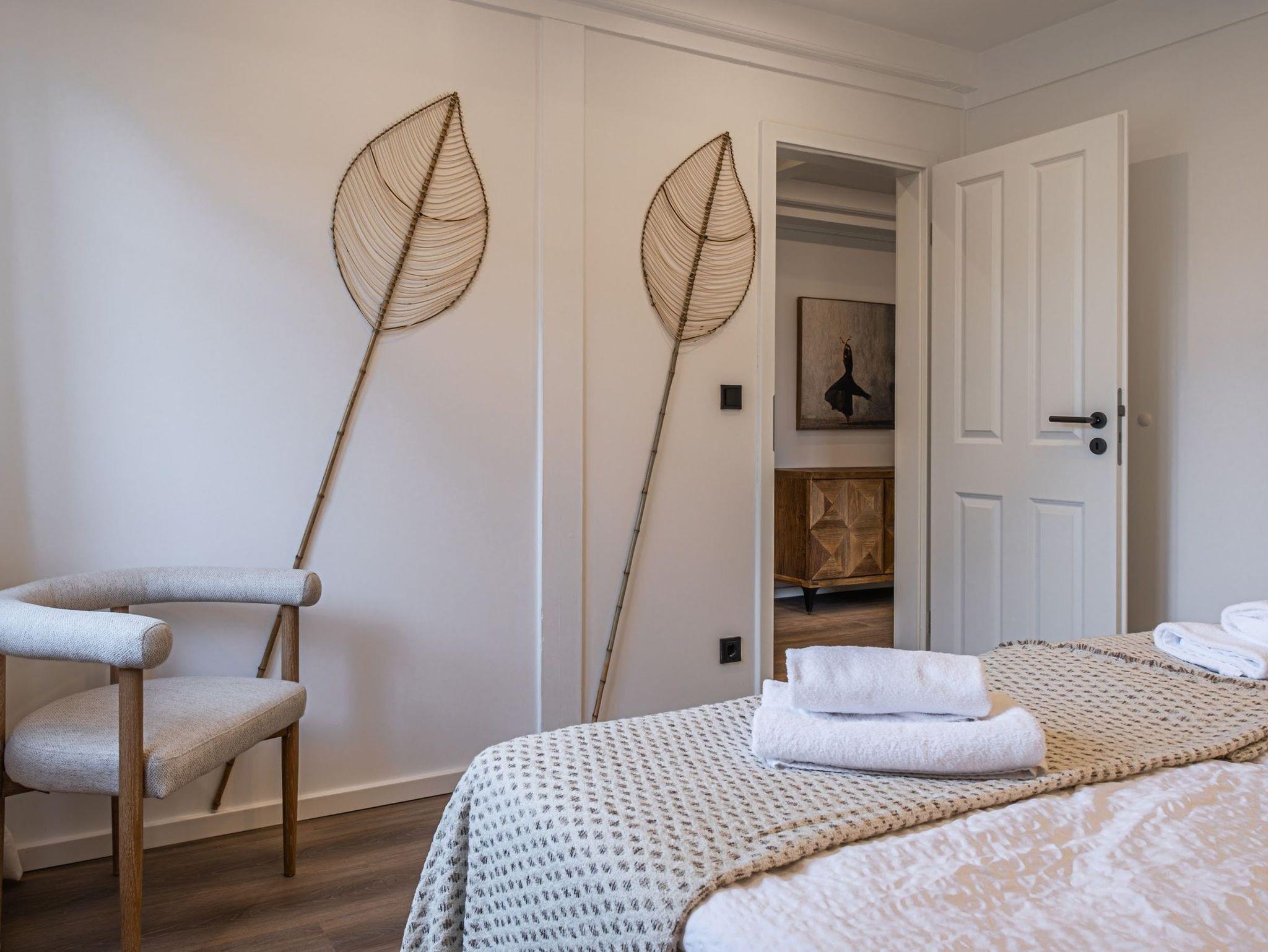 Im Schlafzimmer befindet sich ein Doppelbett und Kleiderschrank. Im großen Badezimmer gibt es eine Dusche und ein WC. Ein Fön gehört auch dazu.
