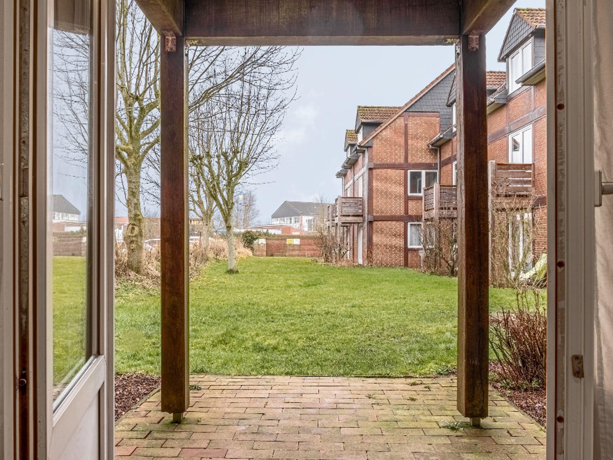 Eine weitläufige Grünanlage rahmt die Häuser im Fachwerkstil ein und schafft eine Oase der Ruhe. Liegewiesen und Grünanlagen laden zum Entspannen und Verweilen ein.