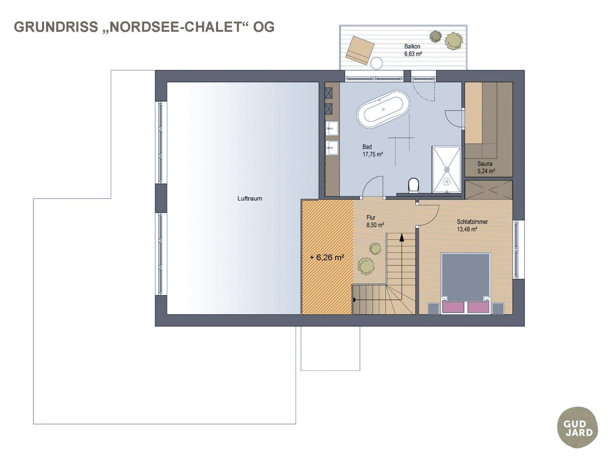 Das GUD JARD Chalet für 2 bis 7 Personen (139 m²), erfüllt höchste Ansprüche: Luxuriöses Bad mit privater Sauna, großzügige Terrasse (54 m²), eigener Garten, edles Design, SONOS Multiroom-Anlage, vollmassive Design-Holzmöbel und eine hochwertig ausgestattete Küche mit Induktionsherd lassen keine Urlaubswünsche offen. Auch in der großen Wohlfühl-Sauna kannst Du mittels des integrierten Bluetooth-Soundsystems Deine Lieblingsmusik genießen.