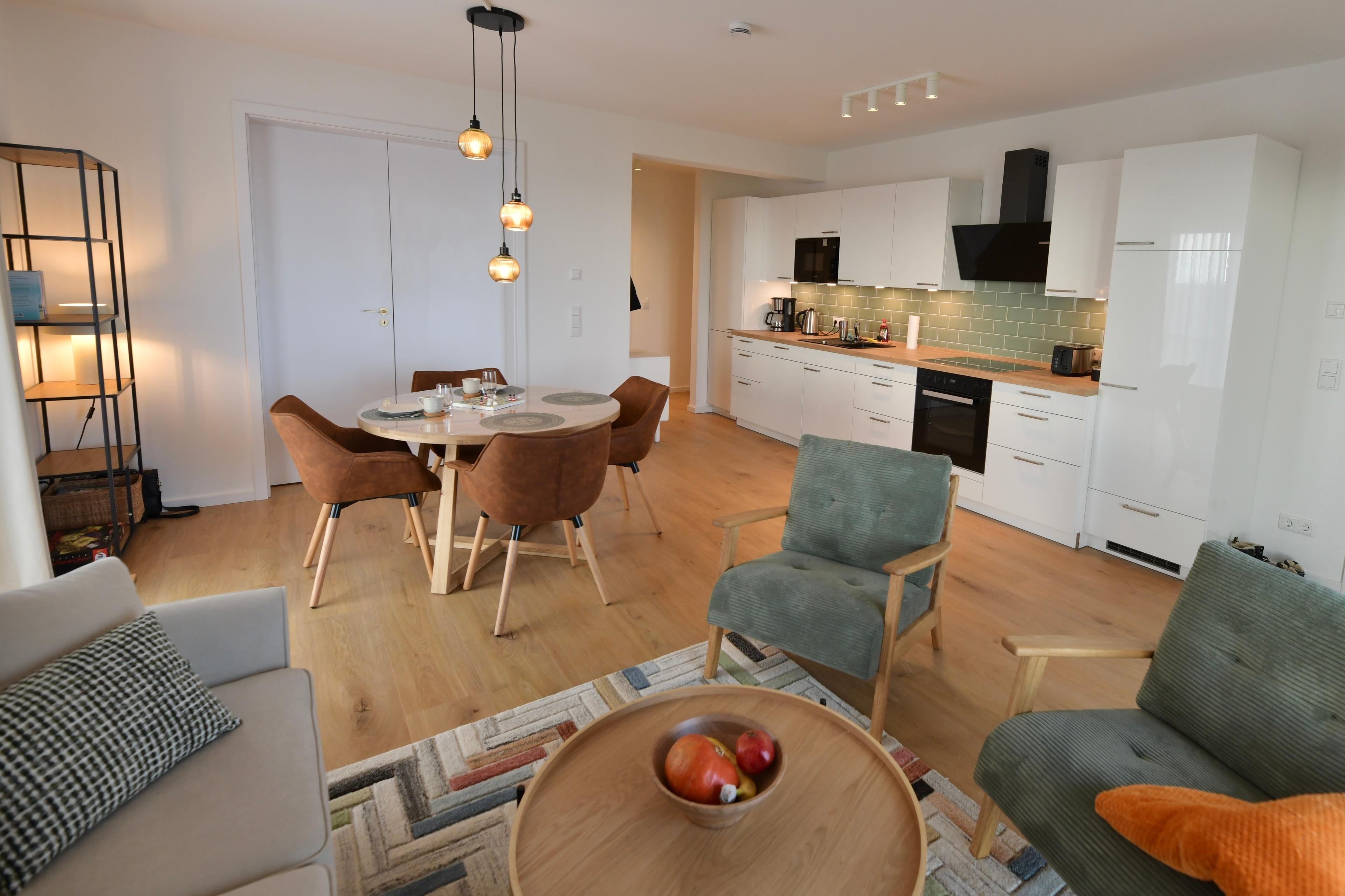 Unsere stilvoll eingerichtete Ferienwohnung verbindet nordische Gelassenheit mit modernem Komfort - helle Farben, natürliche Materialien und ein Gefühl von Weite.