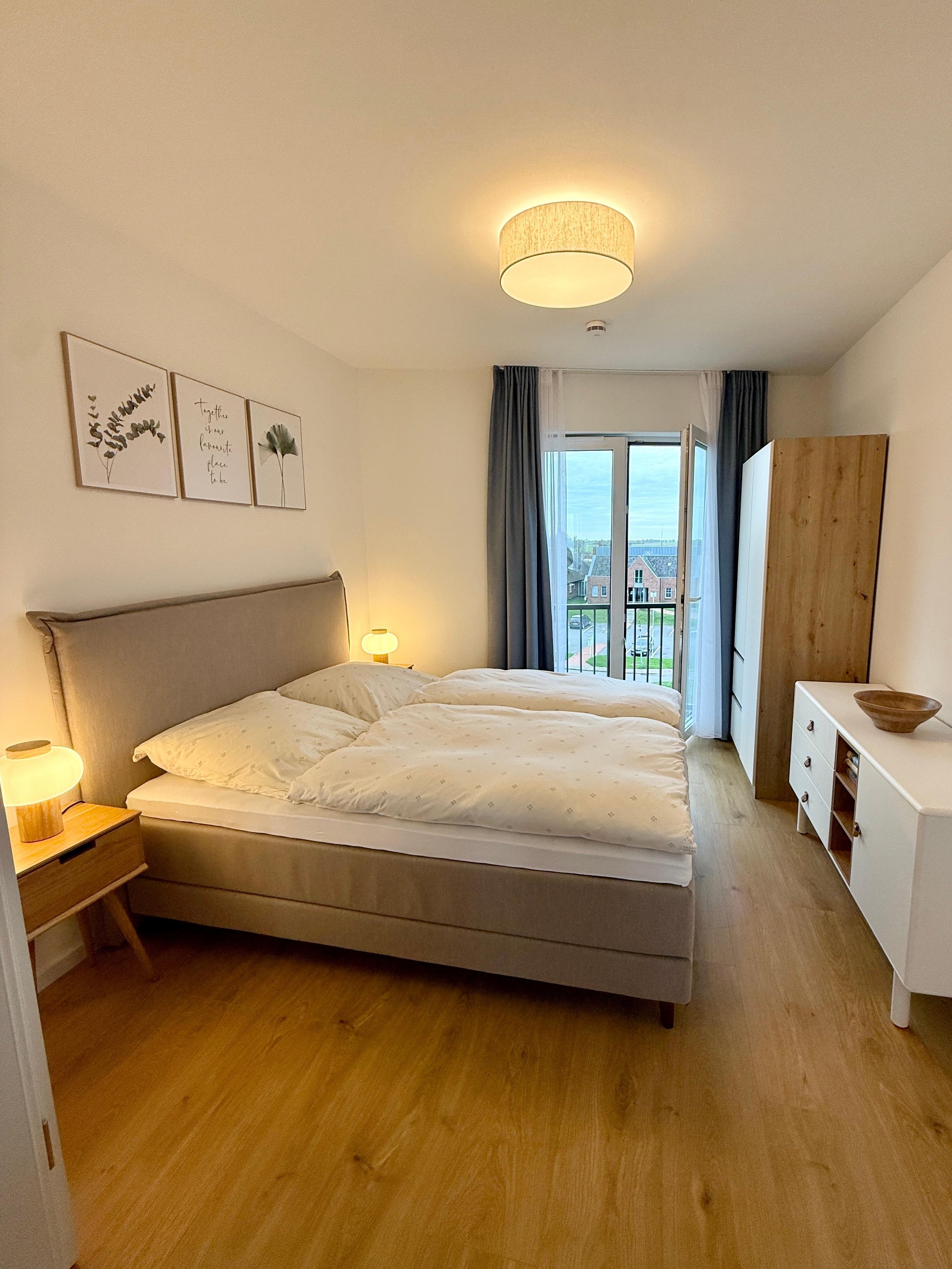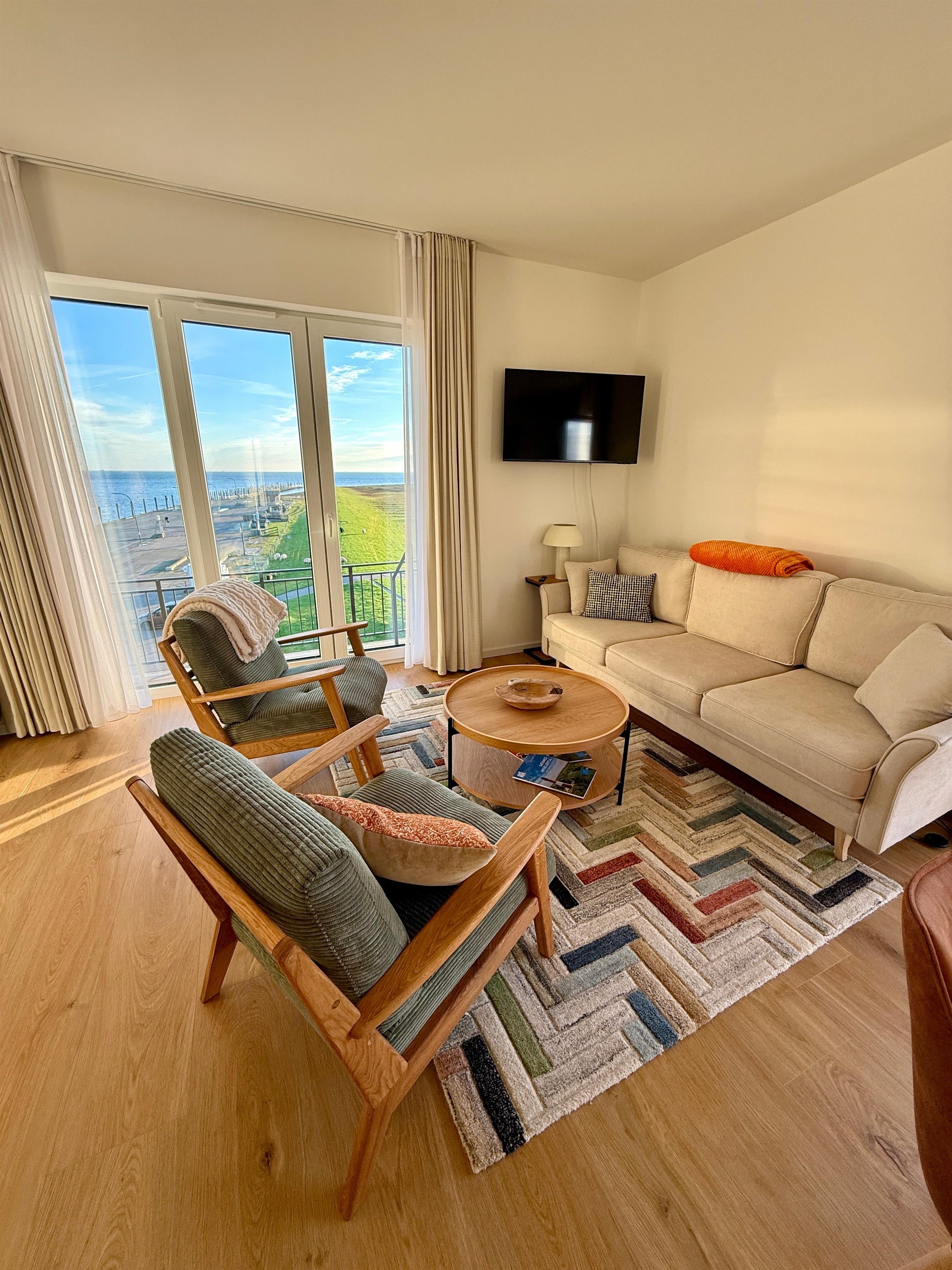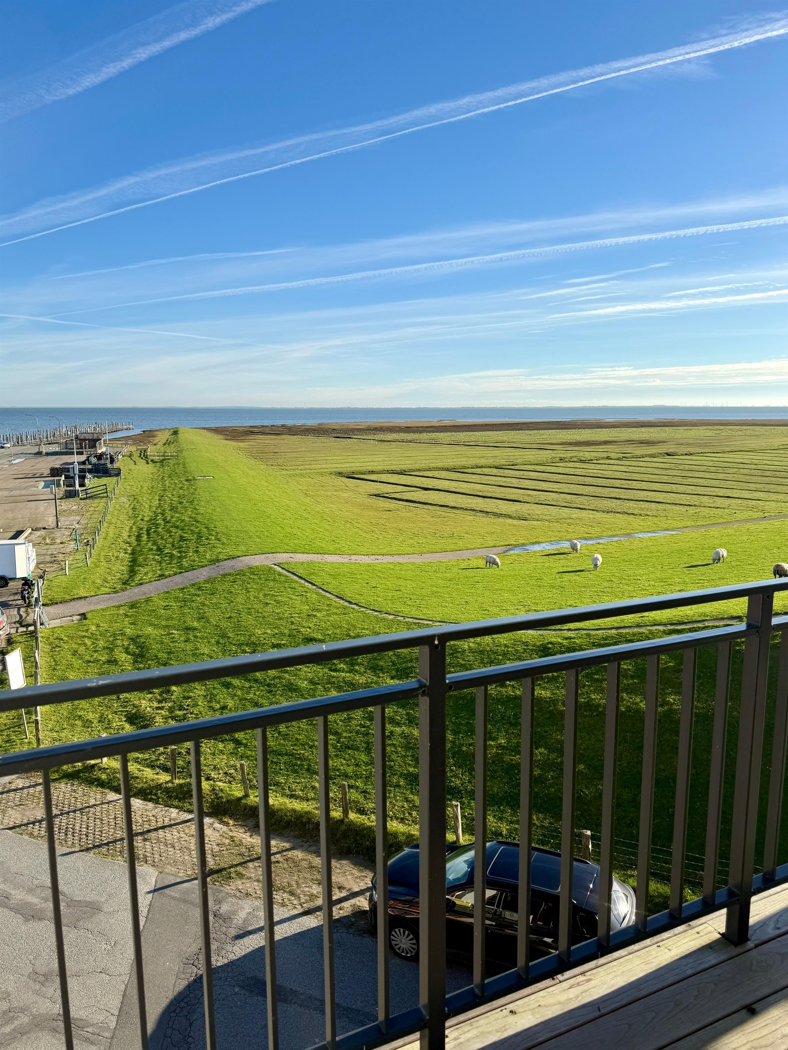 Genießen Sie Meerblick und Ruhe in der stilvollen Ferienwohnung Meerzeit auf Pellworm mit Balkon und hochwertiger Ausstattung.
