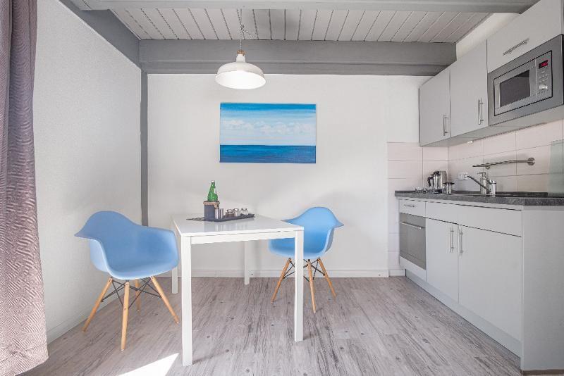 Die lichtdurchflutete Wohnung verfügt über ein geschmackvoll eingerichtetes Schlafzimmer oder Wohnbereich, der Ihnen den idealen Rückzugsort bietet, um nach einem aktiven Tag in der Natur zu entspannen. Die Küche, die elegant in das Wohnambiente eingebettet ist, ist mit modernen Annehmlichkeiten wie Cerankochfeld, Backofen, Kühlschrank, Mikrowelle, Geschirrspüler und weiteren Küchenutensilien ausgestattet. Hier können Sie ganz einfach kulinarische Genüsse zubereiten. Ein optionaler Brötchenservice kann Ihren Morgen noch genussvoller machen.