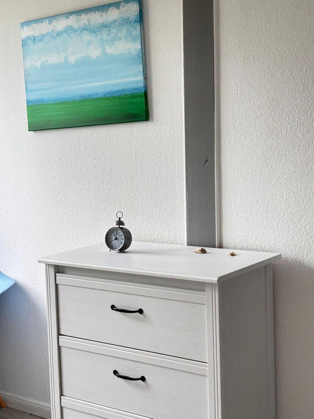 Gemütliche Dachgeschosswohnung auf Pellworm mit nordischem Flair und moderner Ausstattung für erholsamen Urlaub.