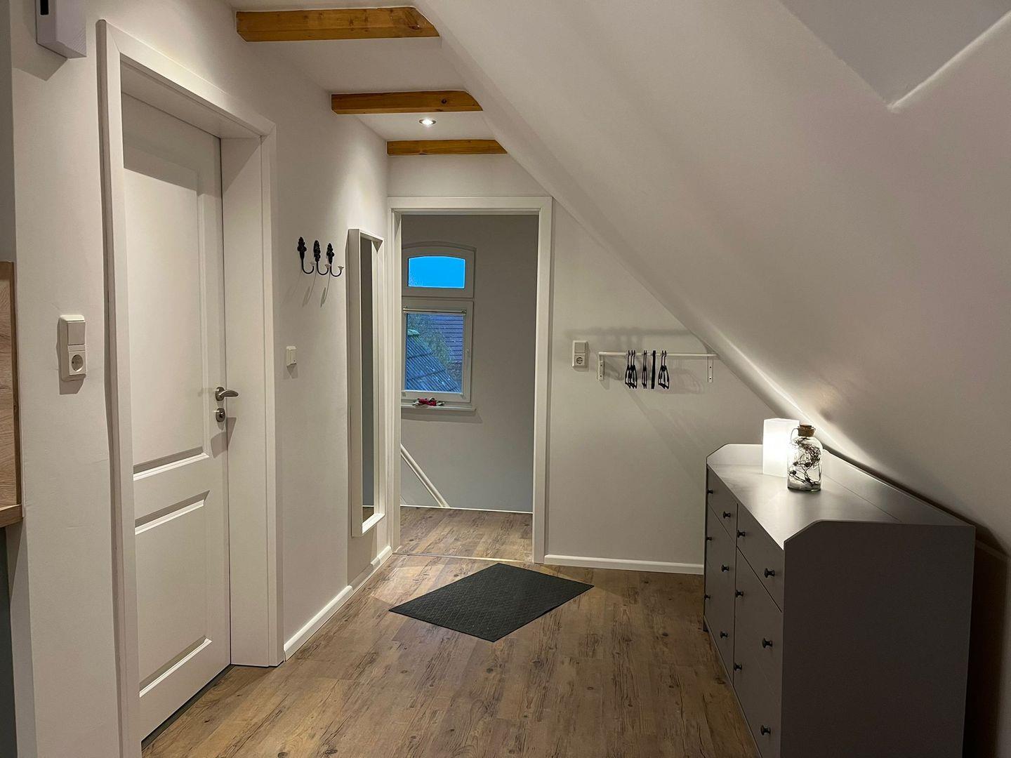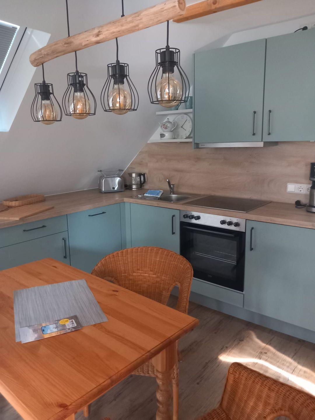 Die Ferienwohnung Amelie befindet sich in Amei´s Huuske im Obergeschoß. Die Wohnung wurde 2021 komplett renoviert. Über eine eigene Eingangstür gelangen Sie in die Oberwohnung. Schon beim Öffnen der Tür fühlen Sie sich gleich wohl. Im Eingangsbereich finden Sie eine Garderobe. Das helle Badezimmer verfügt über Dusche/WC. Der Wohn- und Schlafraum lässt keine Wünsche offen. Getrennt durch einen mittigen Schornstein wirkt der Raum gemütlich. Die moderne Küchenzeile ist voll ausgestattet. Gegenüber kann am Esstisch mit Korbstühlen fabelhaft gegessen und geklönt werden. Ein Sofa lädt zum Ausruhen ein. Der Mittelpunkt des Raumes ist das große Doppelbett. Kuschelige Abende und Nächte stehen hier bestimmt auf dem Plan. Ein großer Flachbild-TV steht bereit. Die Wohnung ist etwas Besonderes und mit liebevollen Details eingerichtet. Entspannung und Relaxen pur! Im Außenbereich kann eine kleine Terrasse benutzt werden. WLAN ist verfügbar! Haustiere sind nicht erlaubt. Ein Parkplatz befindet sich am Haus.