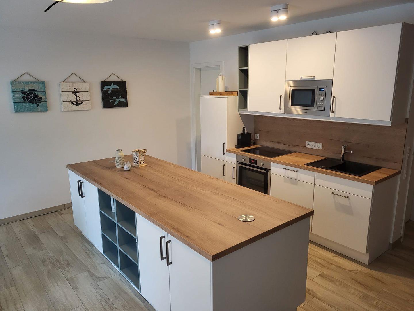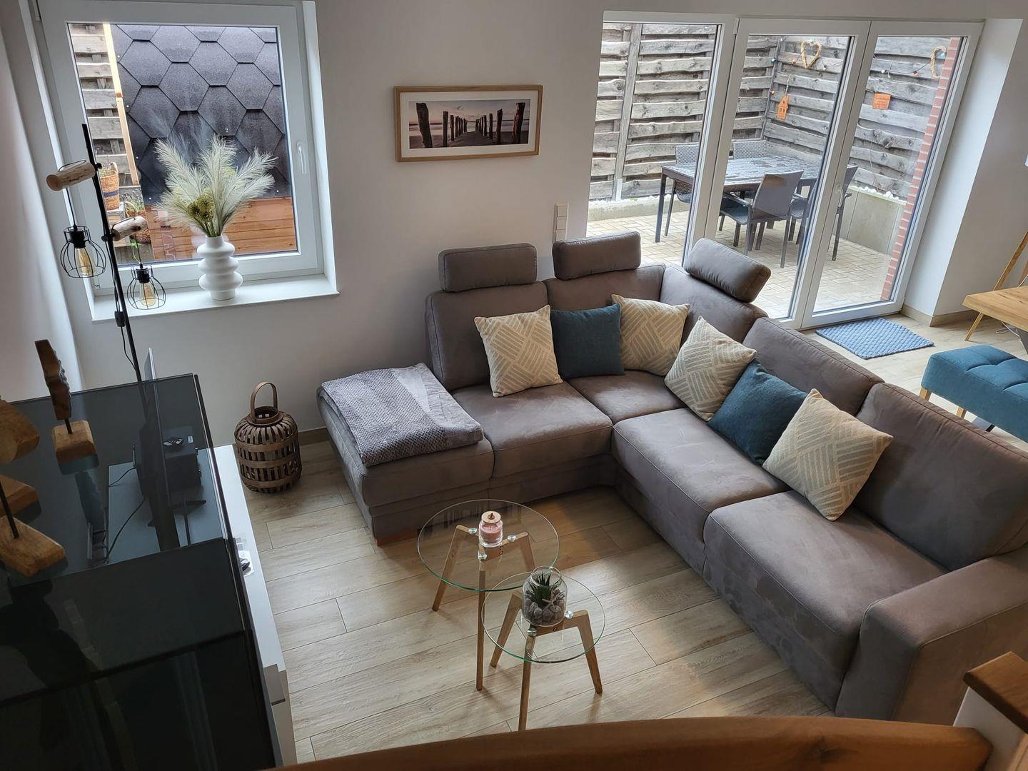 Helle und moderne Ferienwohnung Hyggezeiten in Pilsum mit Terrasse und komfortabler Ausstattung für entspannte Urlaubsmomente.