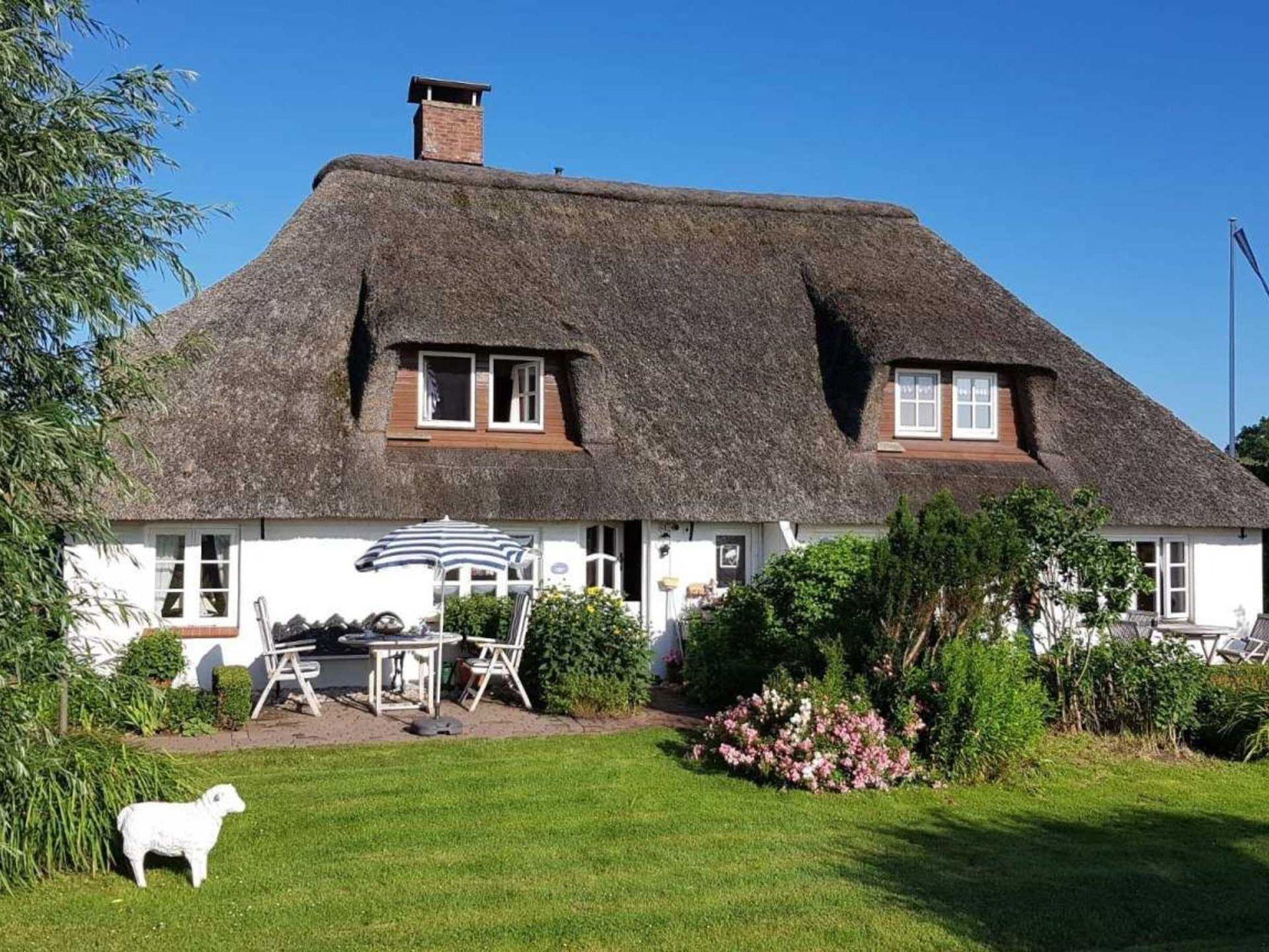 Gemütliches Reetdachhaus in Poppenbüll mit großem Garten und herrlichem Deichblick für erholsame Urlaubstage.
