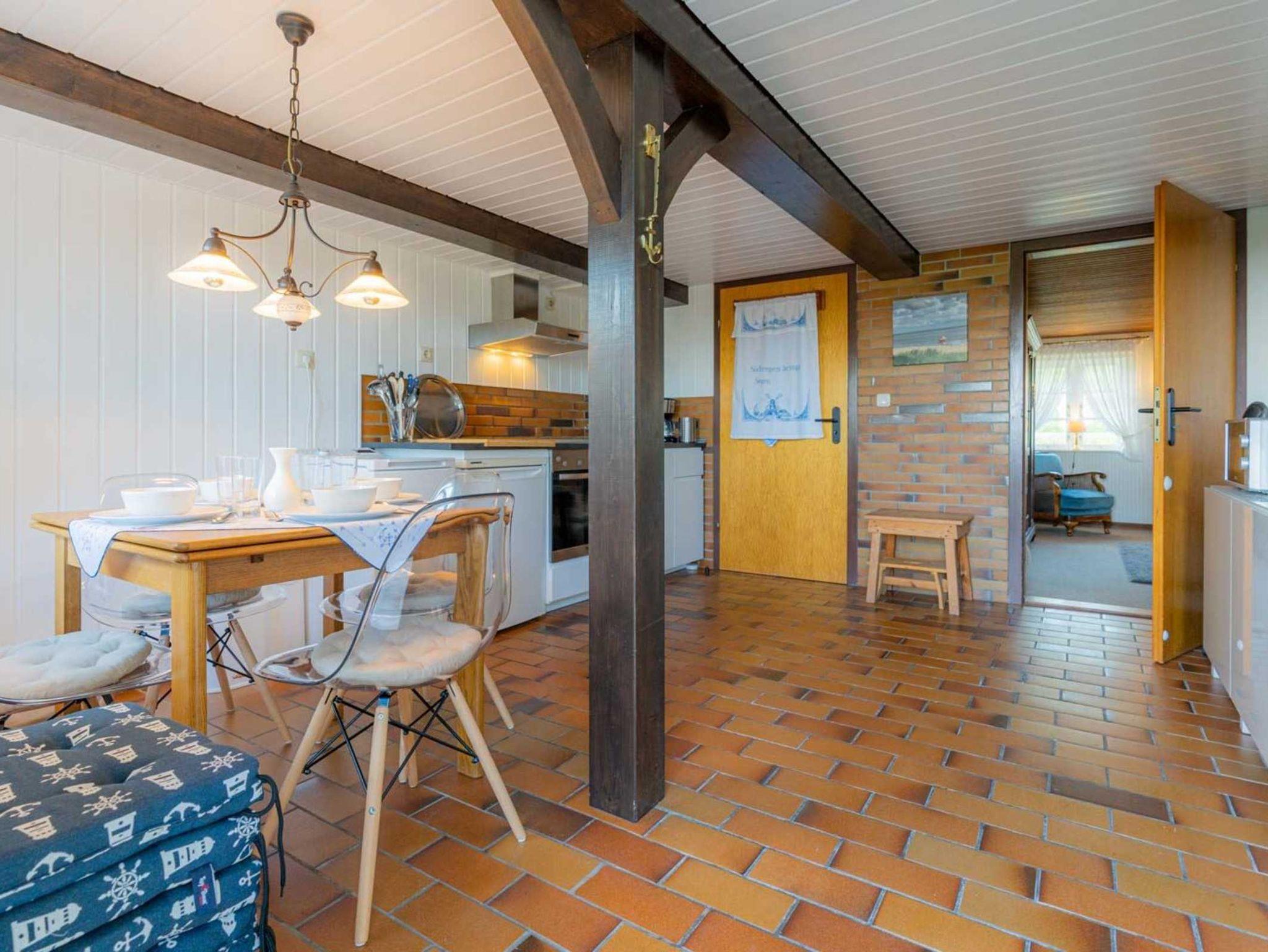 Von beiden Küchen haben Sie direkten Zugang zu den möblierten Gartenterrassen nach Osten mit Blick über die Marschwiesen. In beiden Küchen stehen Waschmaschine kostenlos zur Verfügung.