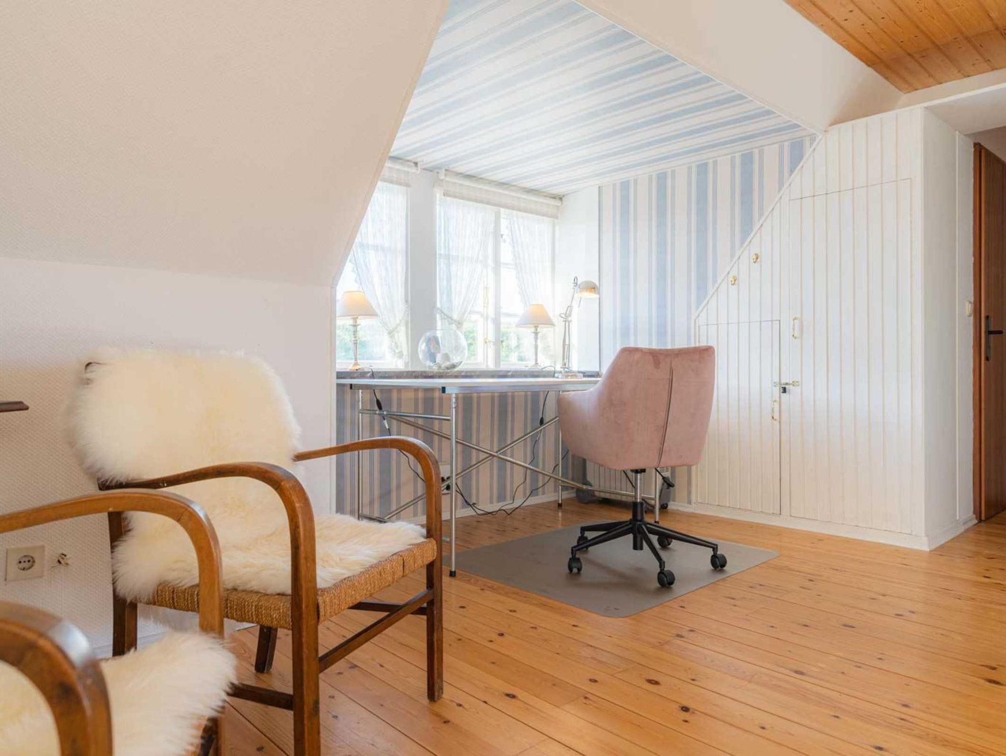 2. Schlafzimmer (OG, ID 431) mit Doppelbett (2x 90x200cm), Einbaukleiderschrank und zwei Schaukelstühlen.