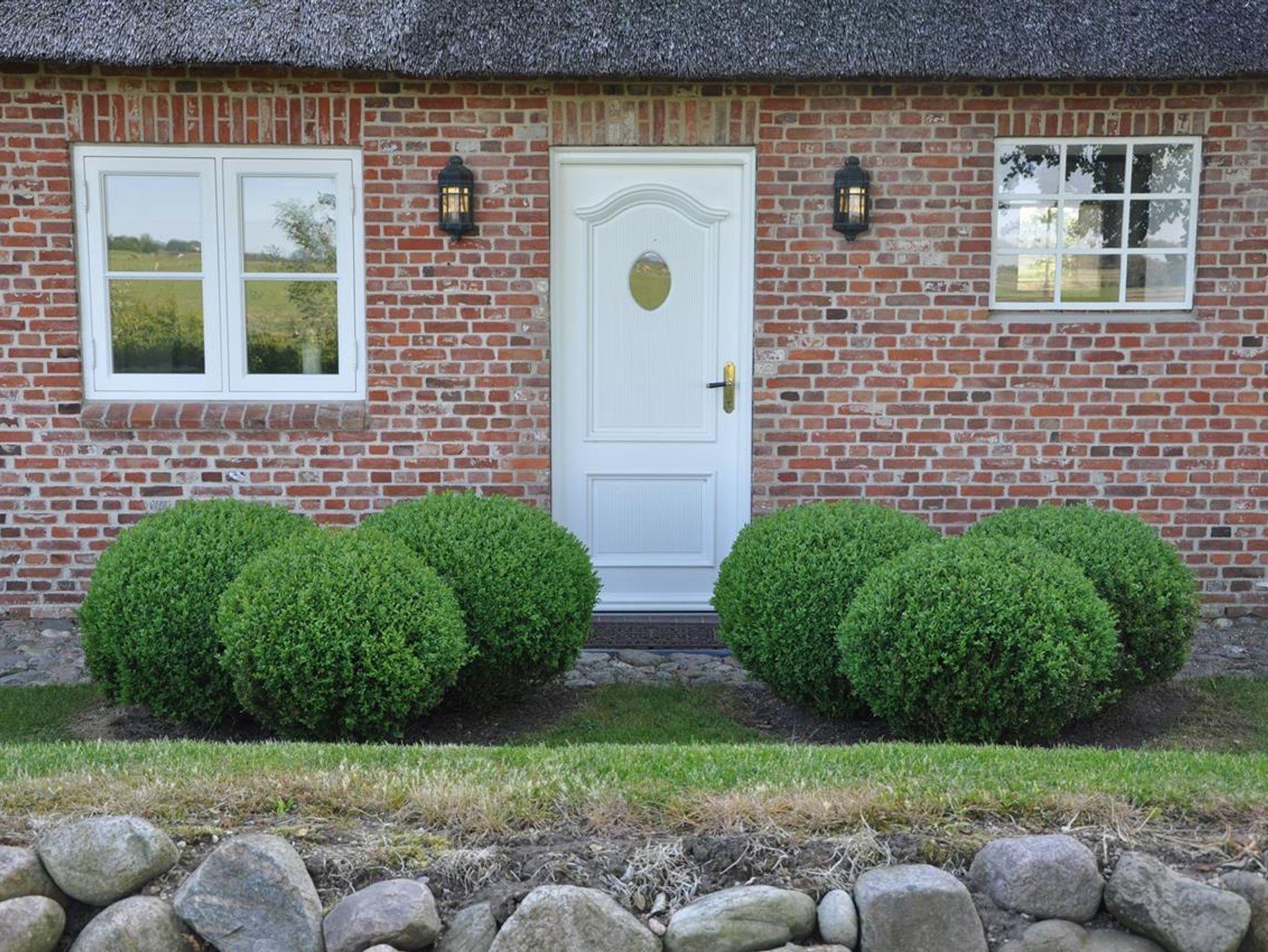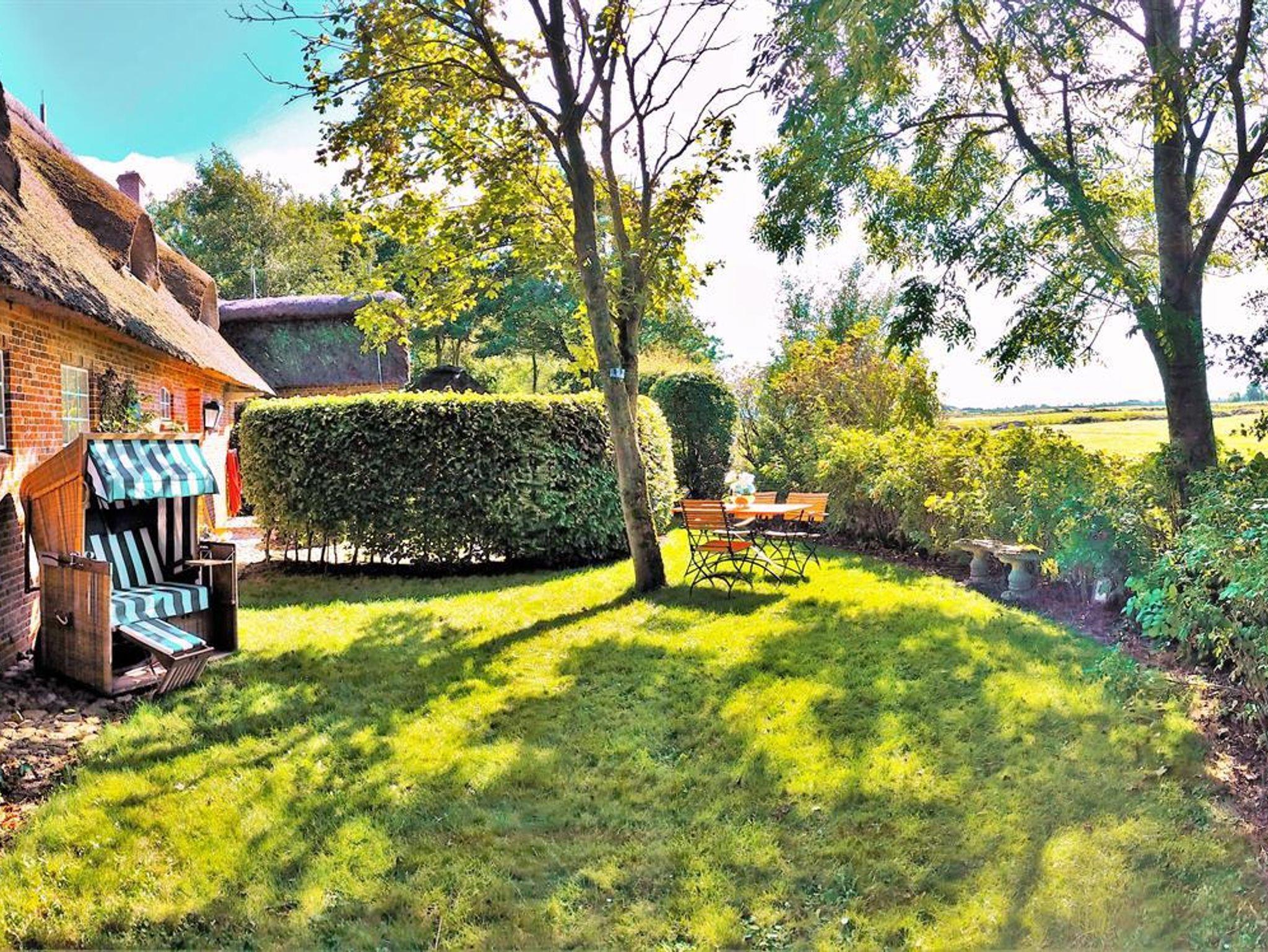 Erleben Sie Erholung in der exklusiven, reetgedeckten Doppelhaushälfte mit Blick auf die Eiderstedter Marsch.