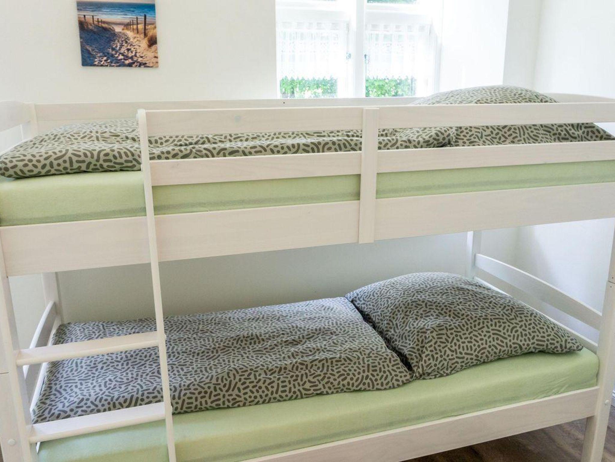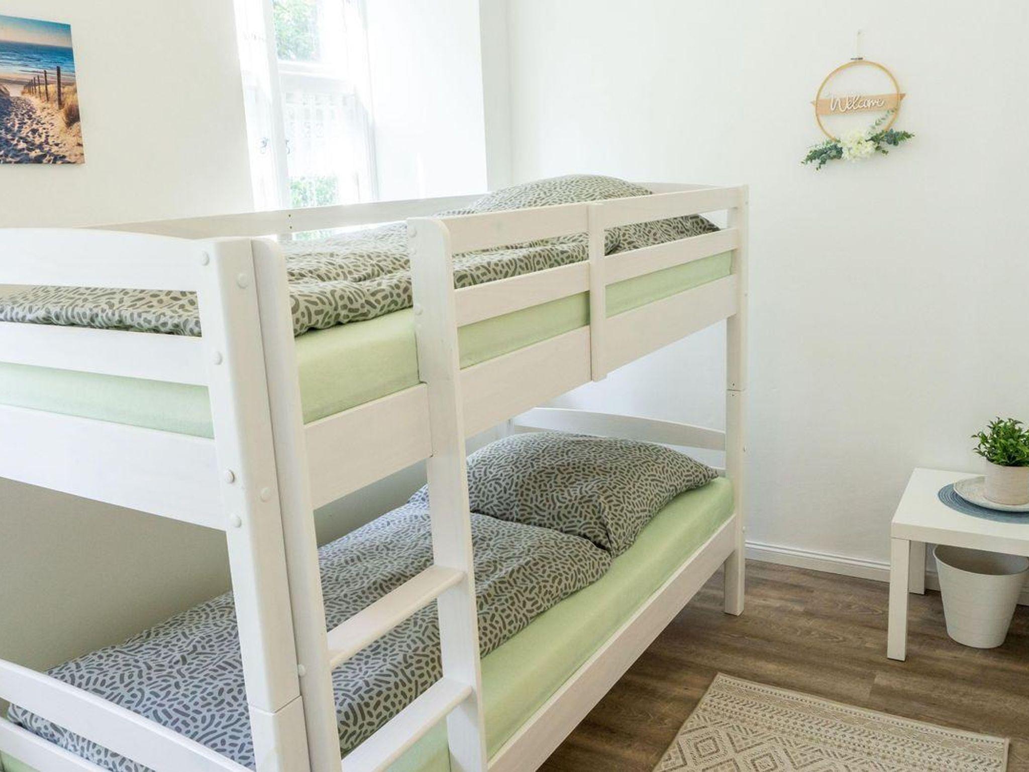 Die Aufteilung umfasst insgesamt 3 Zimmer, wovon 2 als Schlafzimmer gestaltet sind mit einem Doppelbett (200x180cm) und ein Etagenbett für 2 mit den Maßen (200x90cm) . Insgesamt finden bis zu 4 Personen komfortabel Platz. Die Unterkunft eignet sich hervorragend für Familien, Paare oder Freundesgruppen, wobei auch Babys und Kinder herzlich willkommen sind. Für Kleinkinder stehen ein Hochstuhl und ein Babybett bereit.