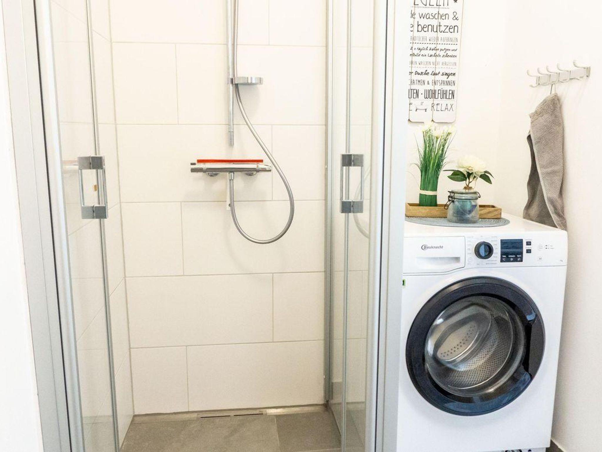Das Badezimmer ist mit einer bodengleichen Dusche, WC, Waschbecken, Spiegel, Haartrockner sowie Handtüchern und Badetüchern ausgestattet. Alle Fenster sind mit Sichtschutz versehen, was Privatsphäre garantiert. Zu den weiteren Annehmlichkeiten zählen kostenloses WLAN und ein Internetzugang, sowohl ein Staubsauger als auch ein Wäscheständer, eine eigene Waschmaschine und die gemeinschaftliche Nutzung eines Trockners.
